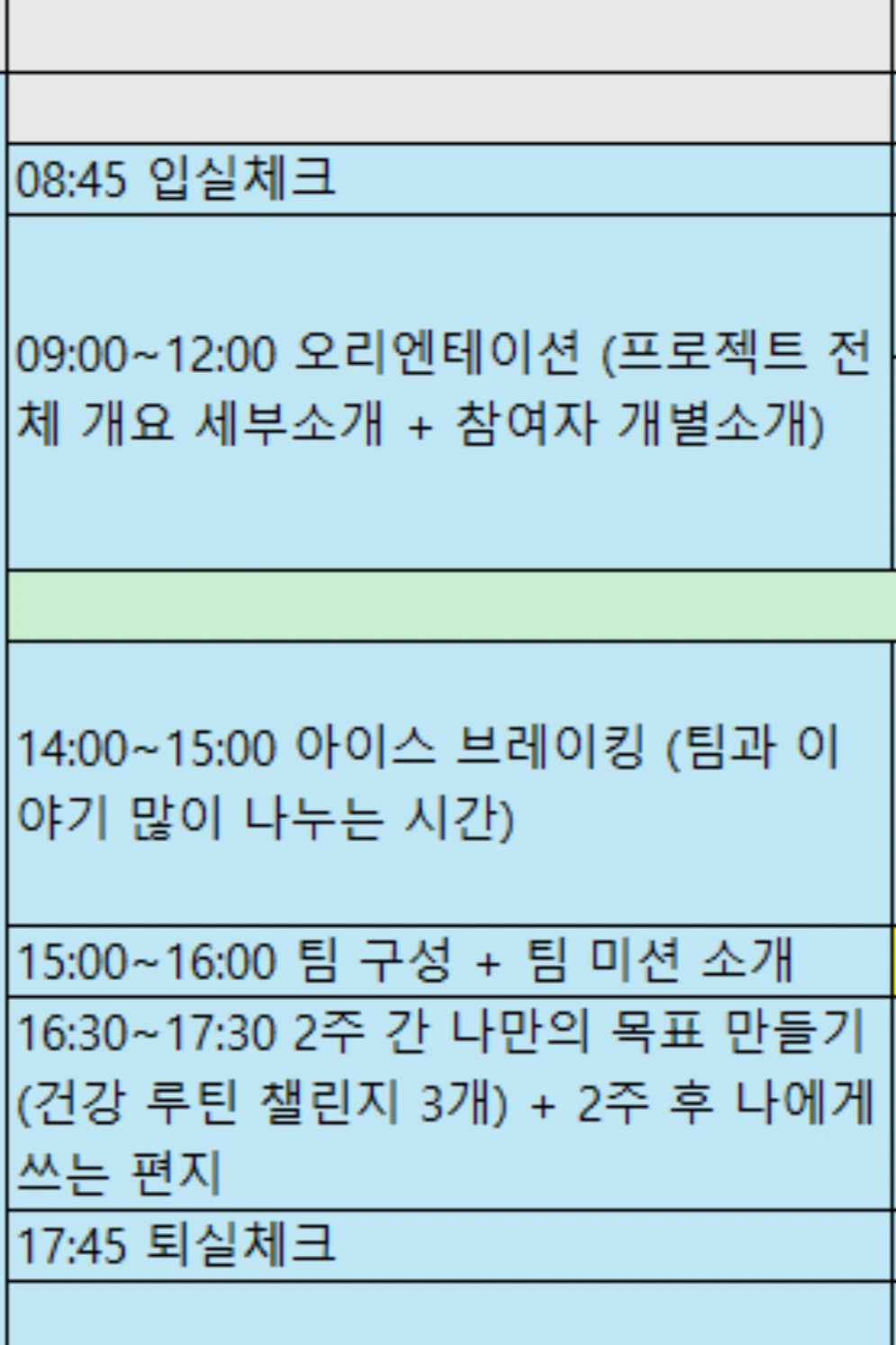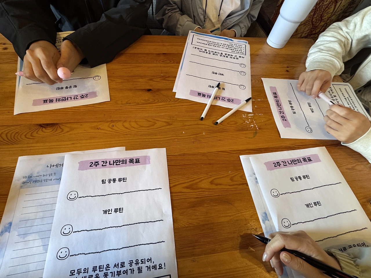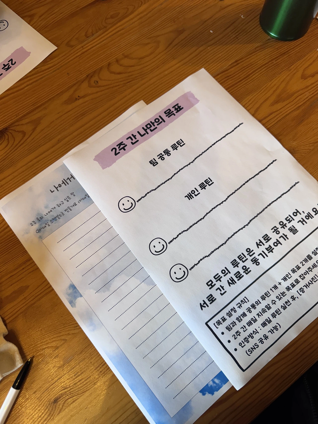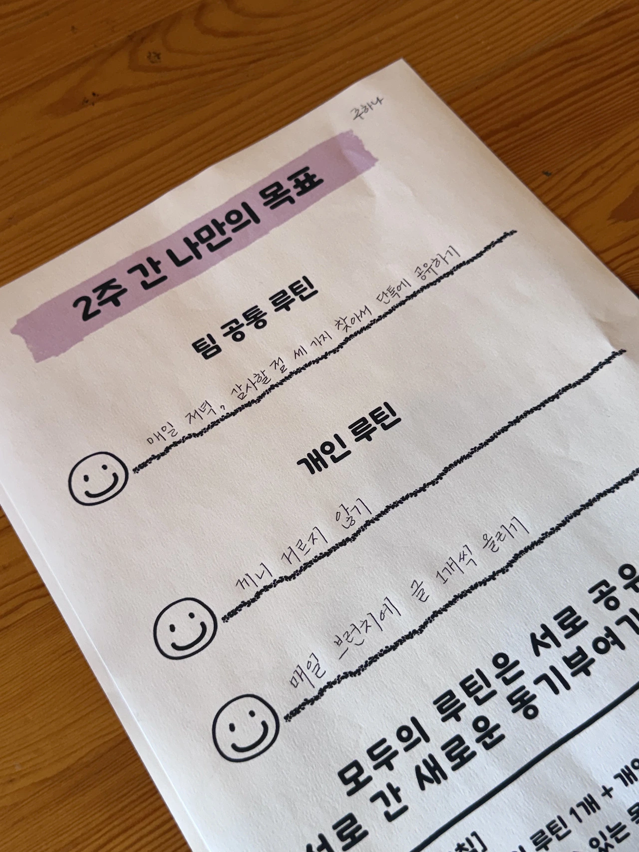 2주 동안의 팀 공통 루틴과 개인 루틴을 세우는 시간이었다.