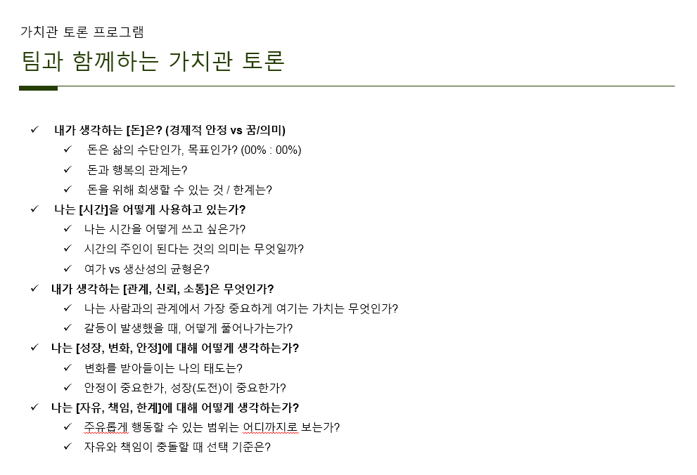 사실 ‘가치관’에 대해 이야기를 나누는 건
