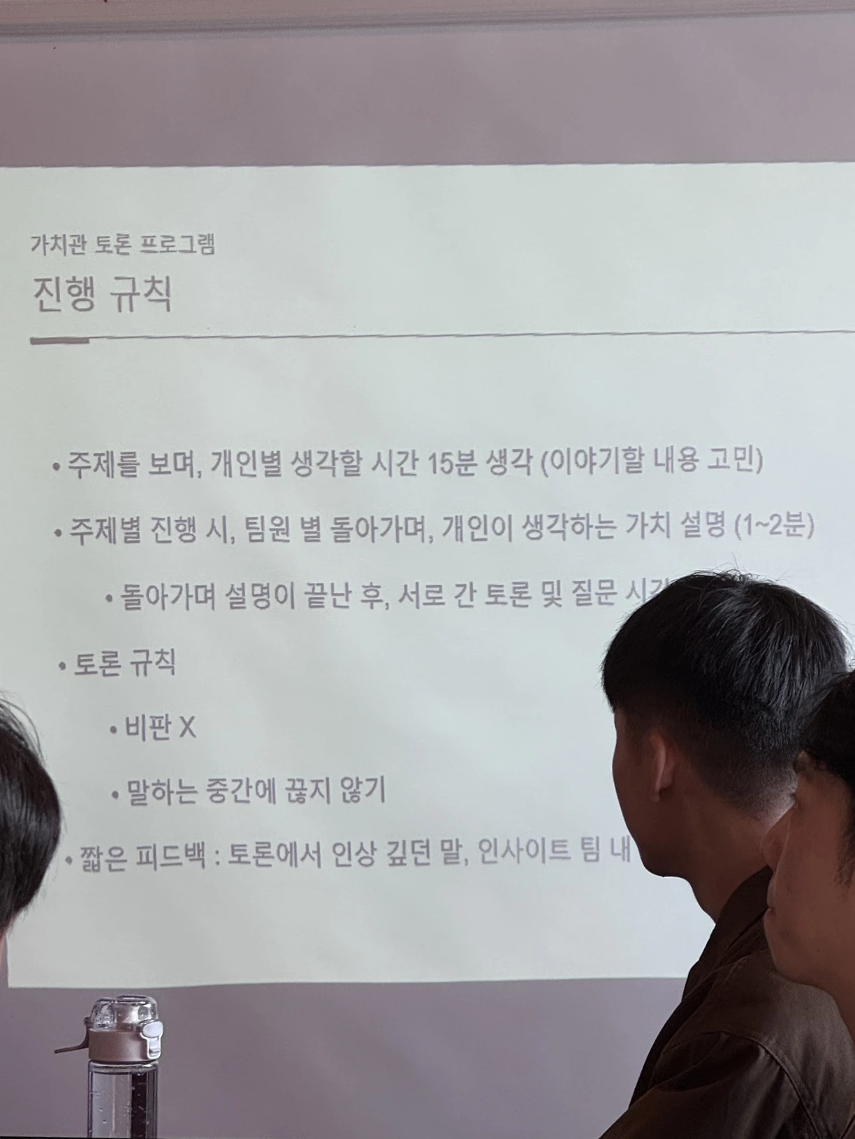 가치관 토론 방법에 대해 간단히 설명을 듣고,
