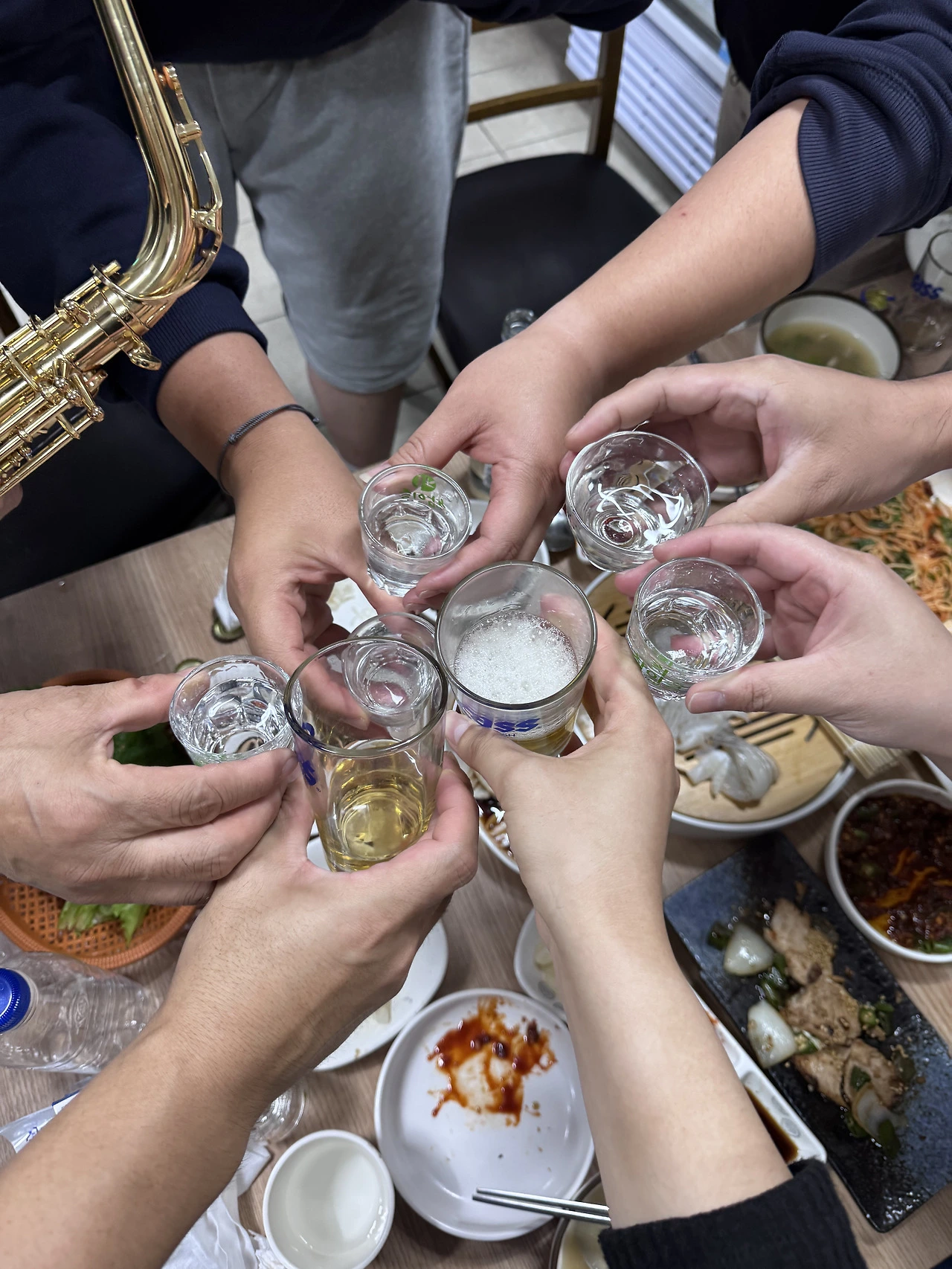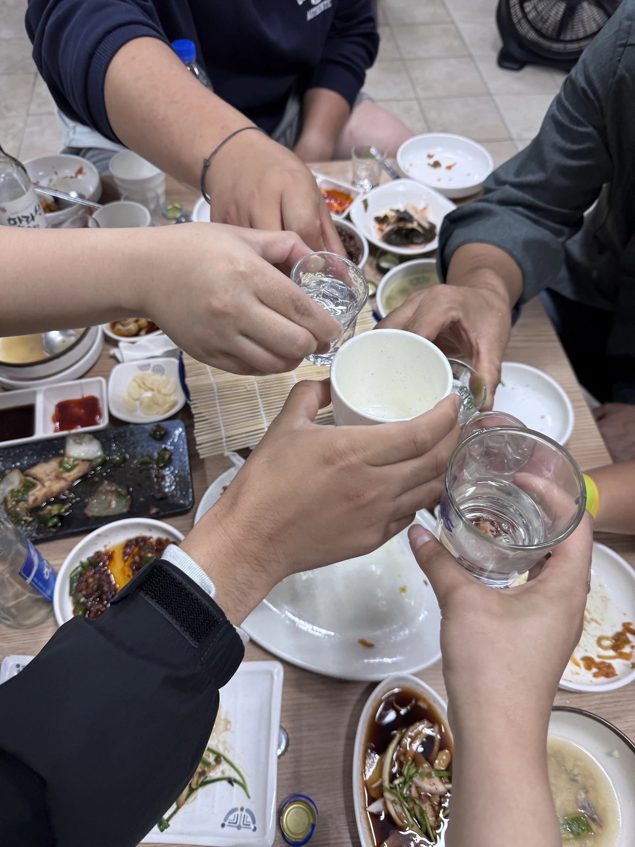 우리 테이블의 소주 몇 잔을 받아 드셨고,