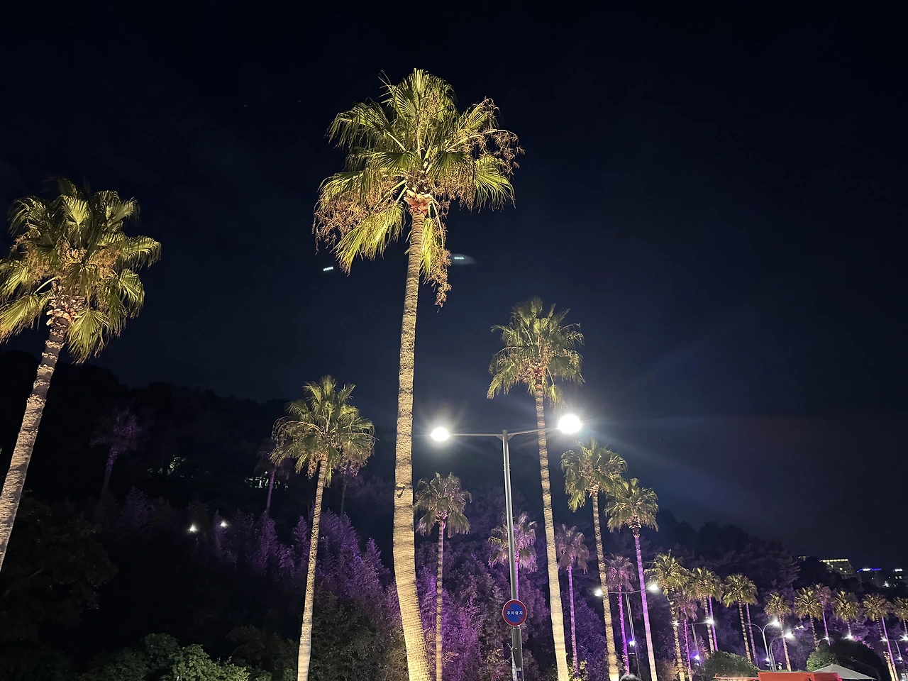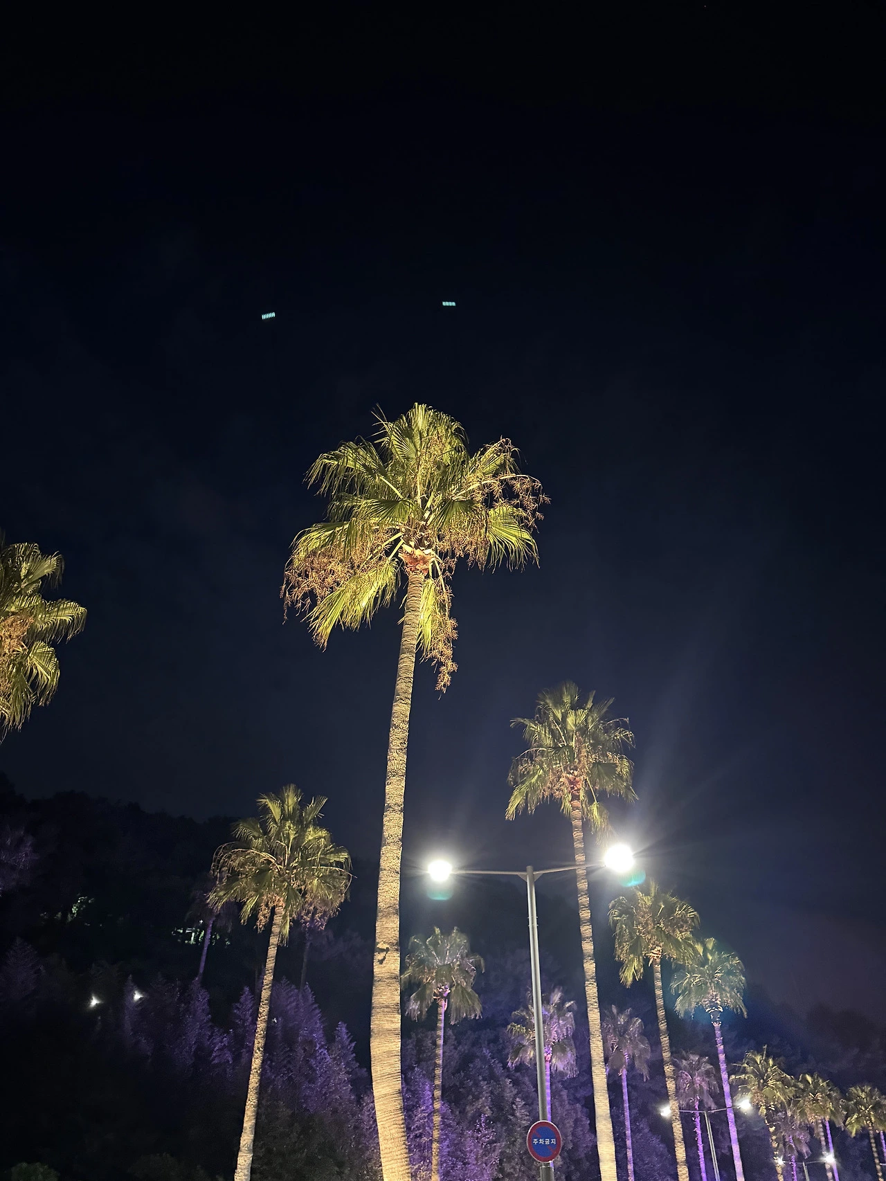그 덕분에 야자수를 밝히고 있는 조명을