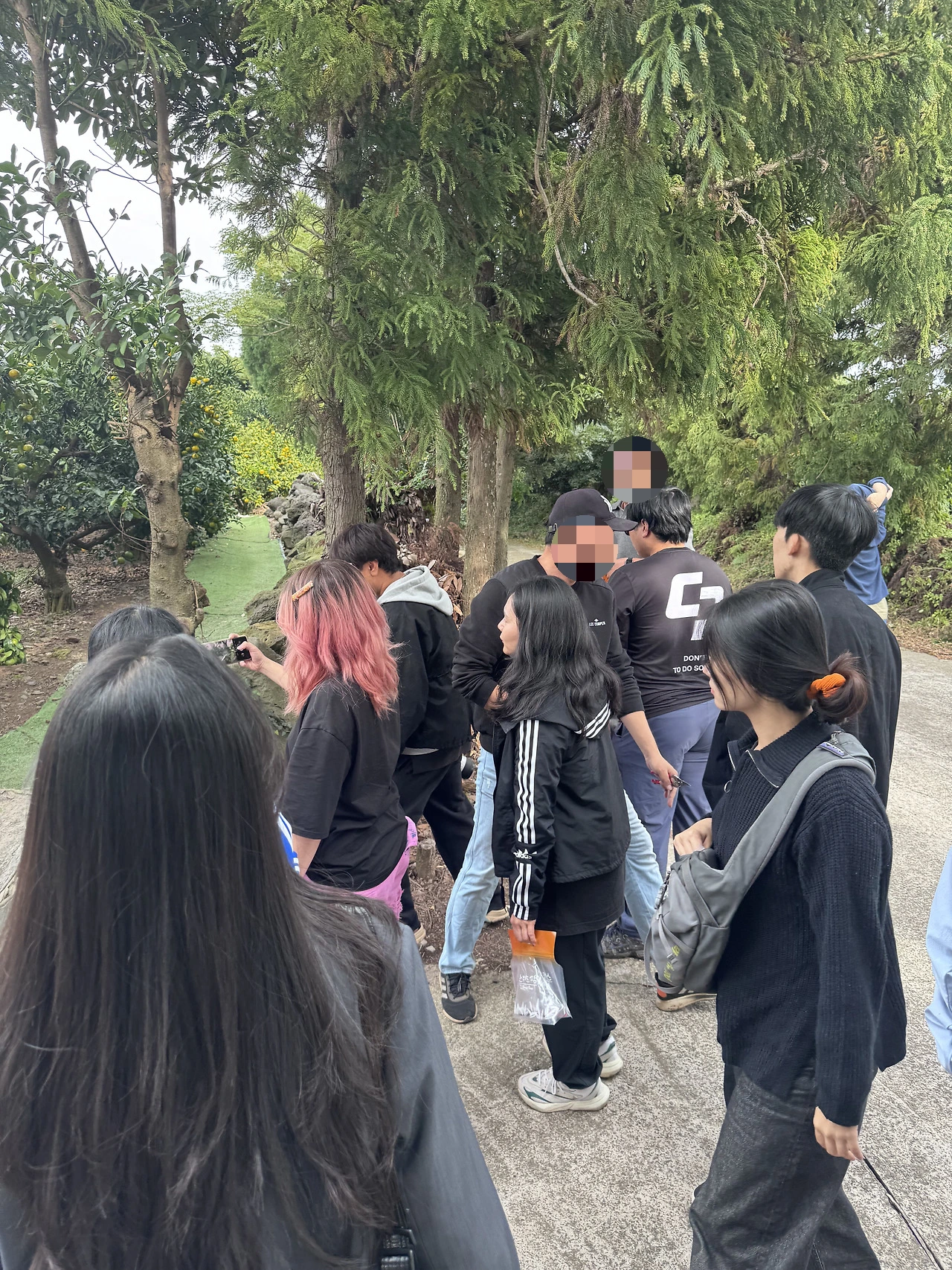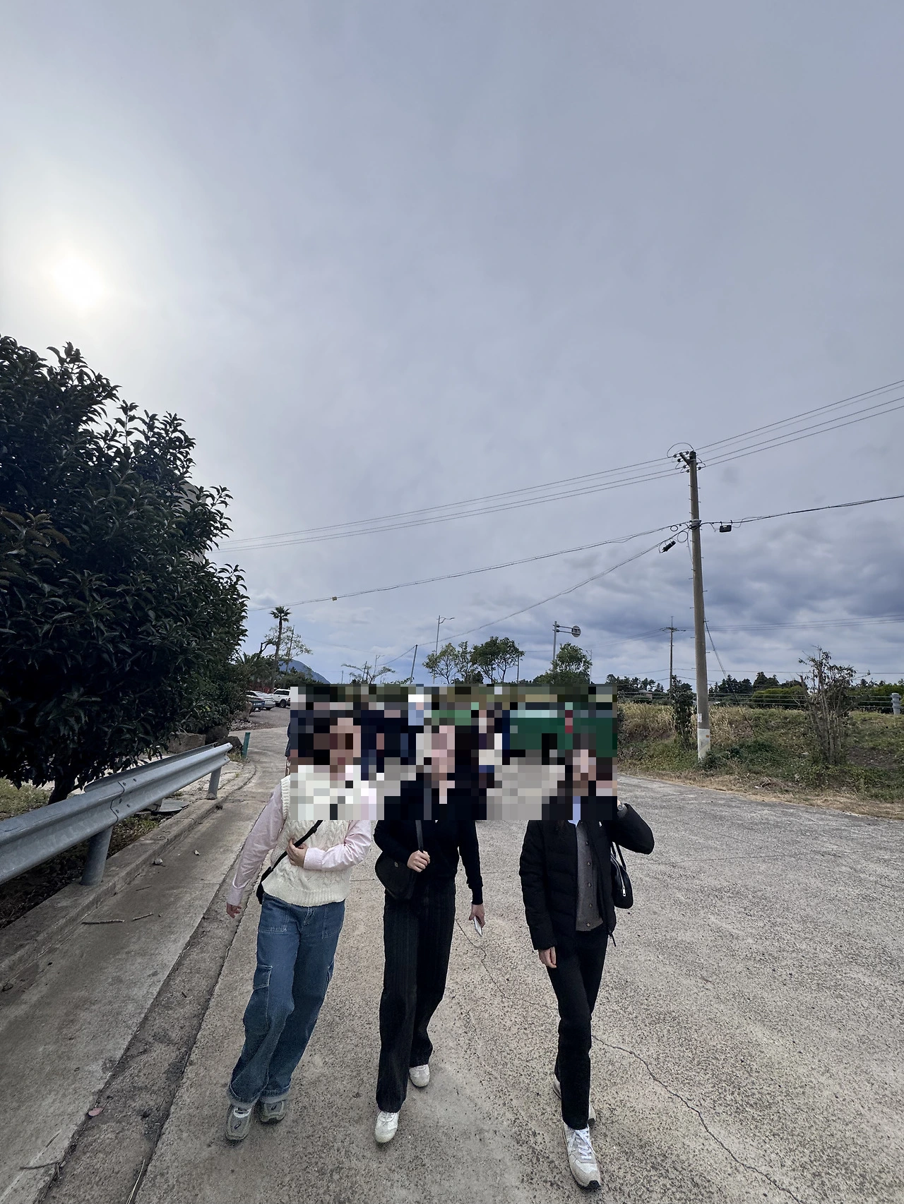 왼쪽 사진은 감귤 체험을 하러 이동하는 우리 멤버들이고,
