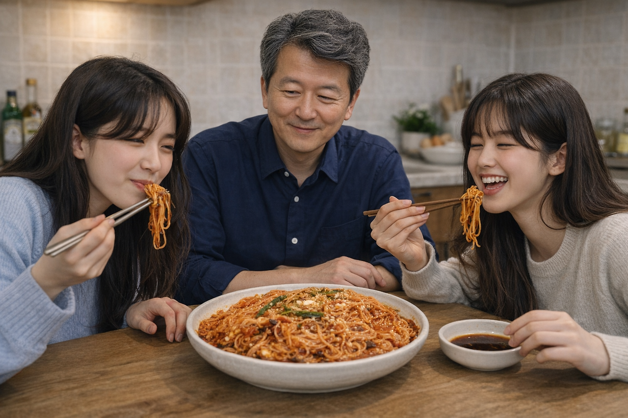 아니나 다를까 아빠는 다시금 방문을 두드렸다. 동생은 기다렸다는 듯 방문을 열고 나가버렸다. 아빠의 유혹에 넘어간 것이었다. 저녁까지 먹은 아빠는 22시가 넘은 야심한 시각만 되면 라면을 끓이거나 국수를 끓여 딸들을 유혹했는데, 억울한 건 워낙 살이 안 찌는 아빠는 아무리 먹어도 날씬한데 성장기 딸들만 먹는 고대로 살이 찐다는 사실이었다.