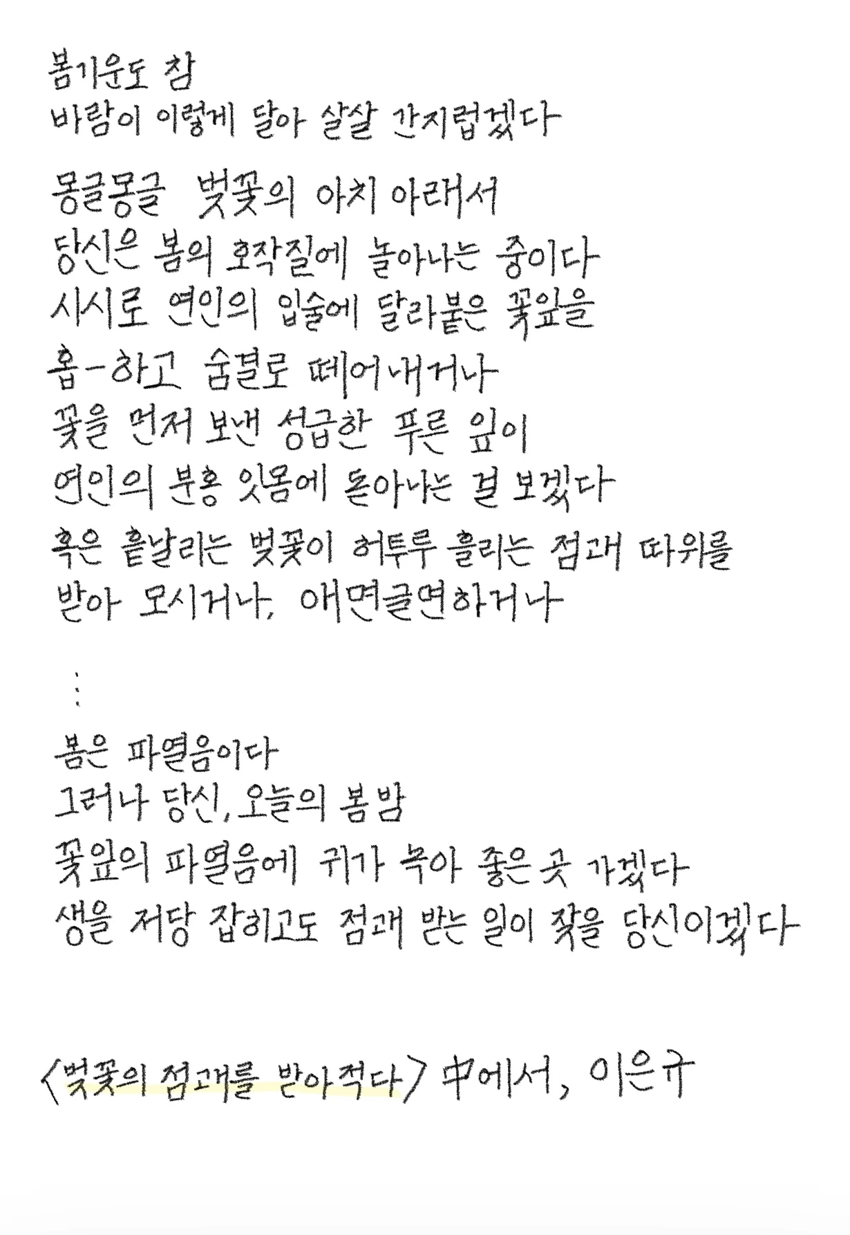 꽃잎의 파열음에 귀가 녹아 좋은 곳 가겠다