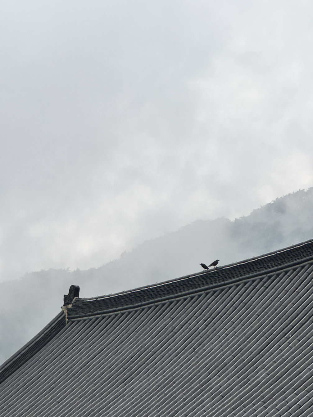 운무가 짙게 낀 해인사와 산을 보고 있자니