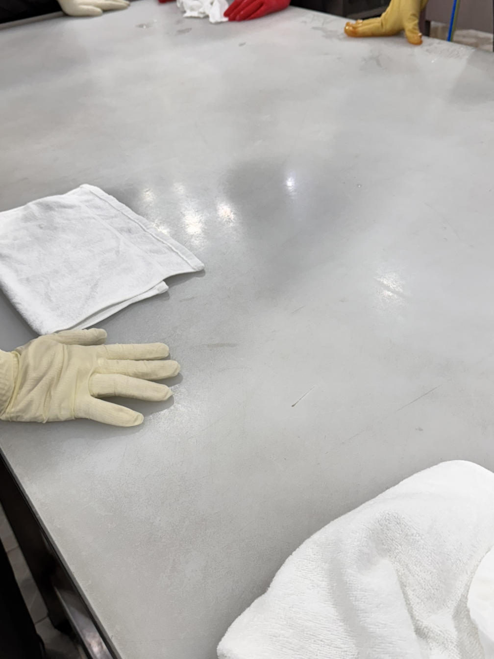 씻은 그릇을 큰 테이블에 올려주시는데, 자원봉사자들은 마른 행주로 해당 그릇과 수저를 닦는 작업을 담당합니다.