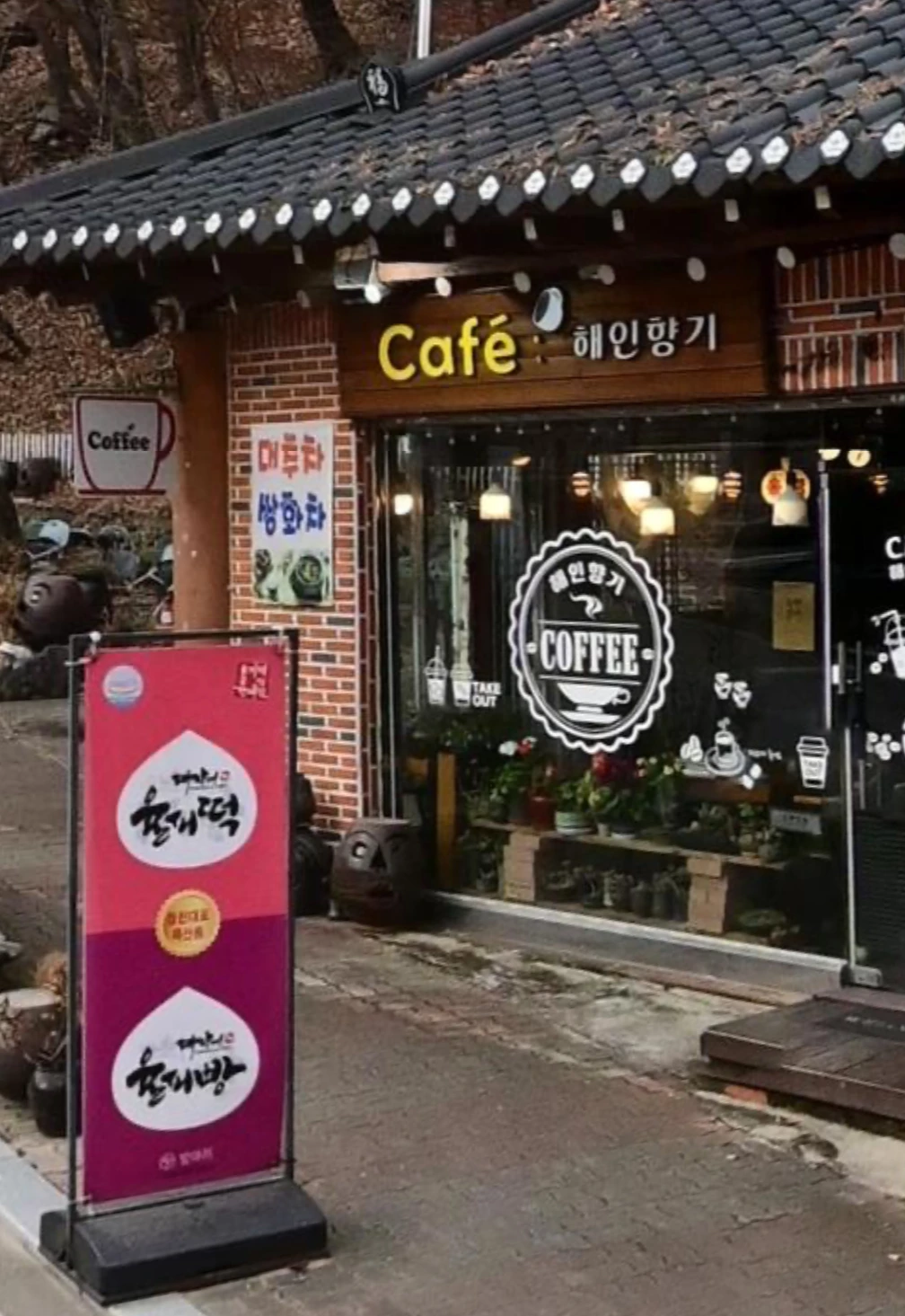 버스에 내릴 때쯤 되자 배가 너무 아파서 급하게 화장실을 찾다가 들어가게 된 '해인향기' 라는 카페.