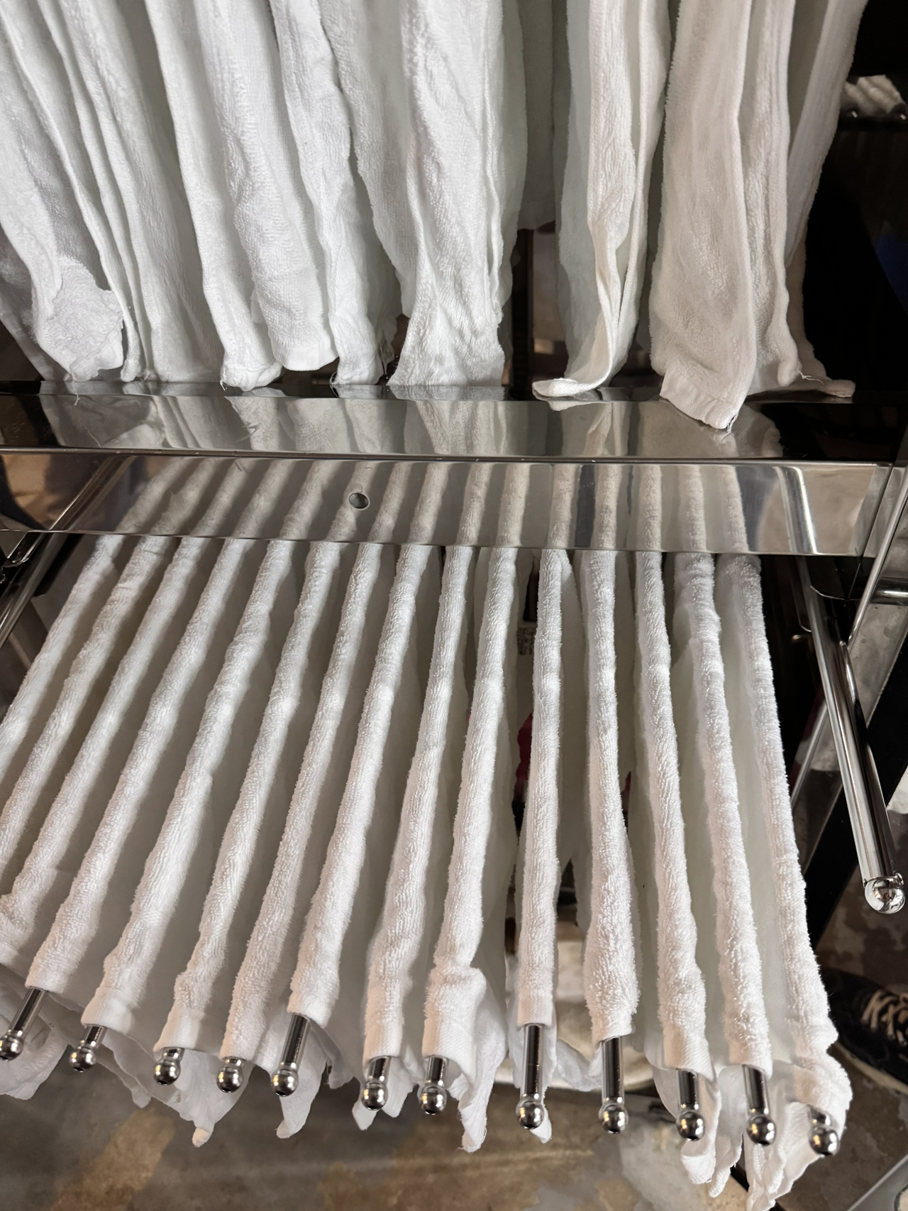 세탁한 행주를 말리는 과정.