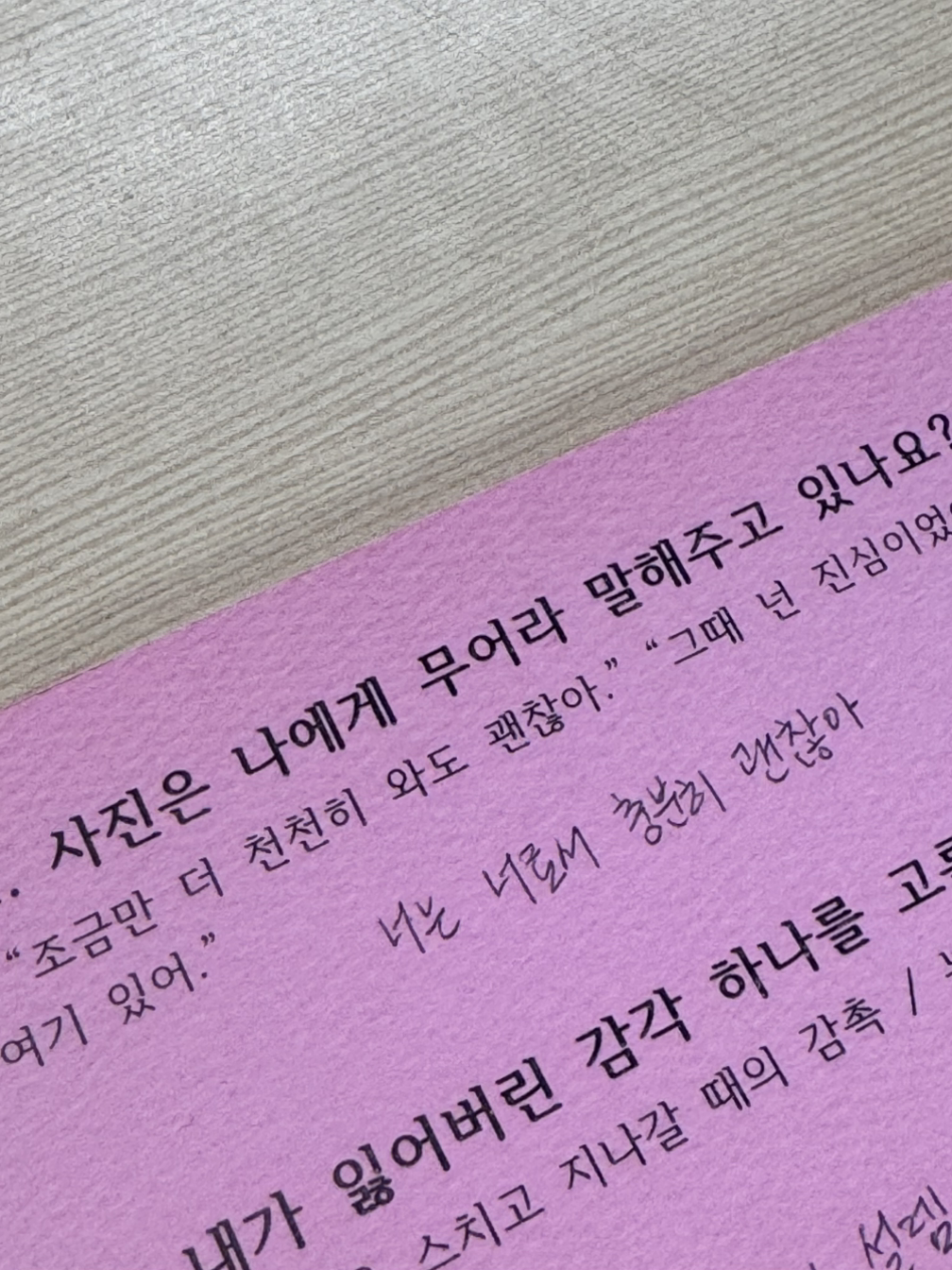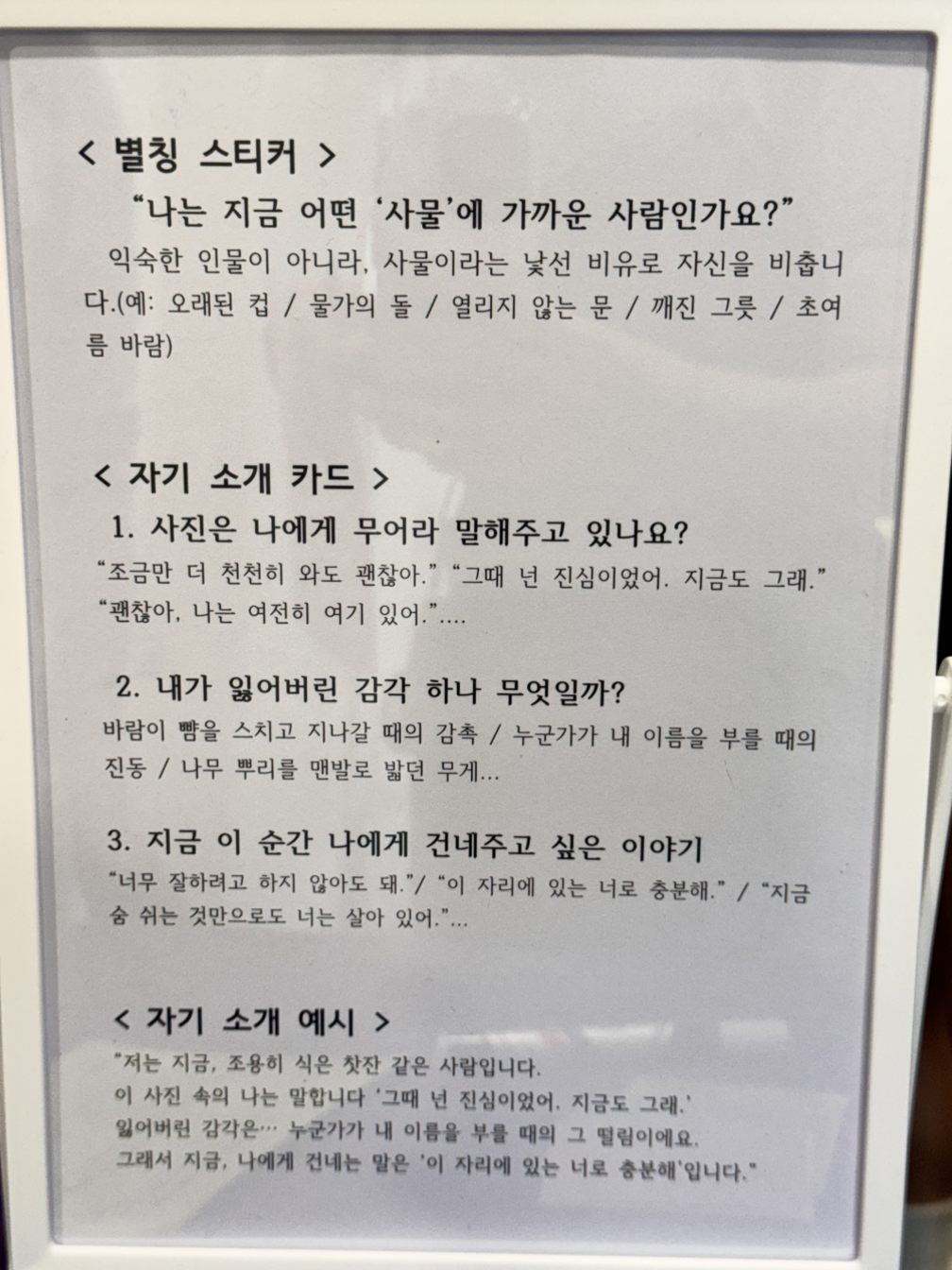 나 스스로를 전혀 다른 방식으로 돌아볼 수 있는 시간이라 좋았다.