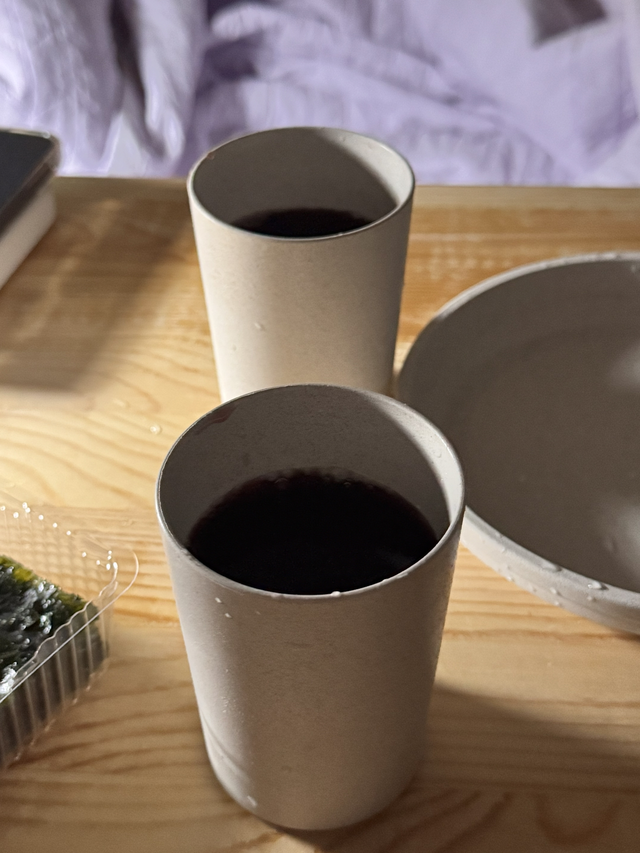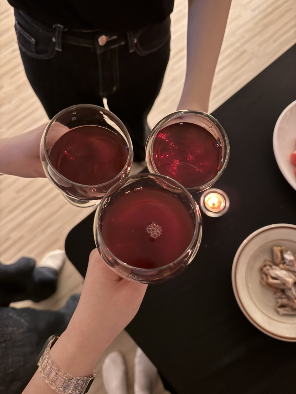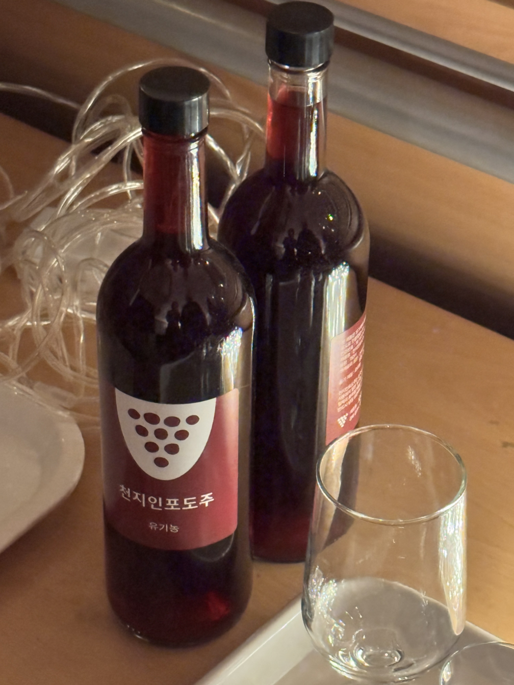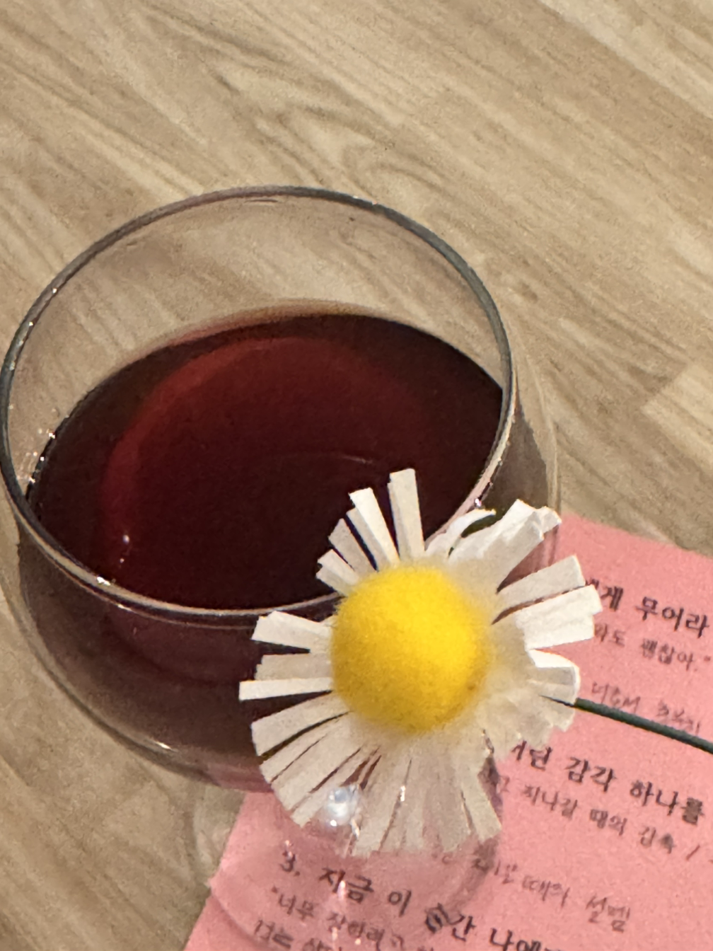 남은 와인을 받아와서 방에서 룸메랑 오붓하게 마셨다.