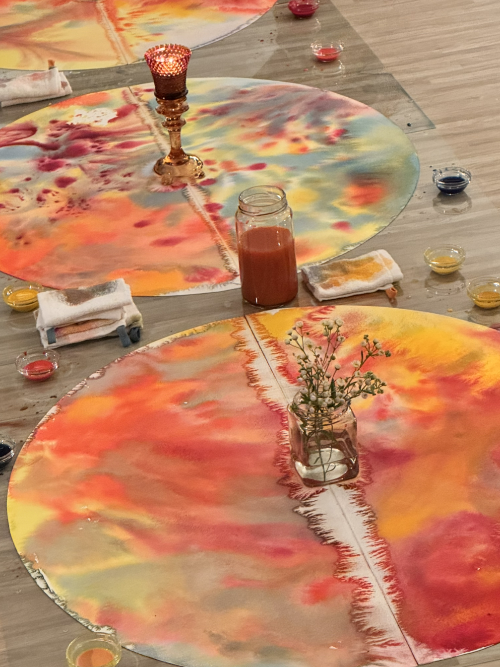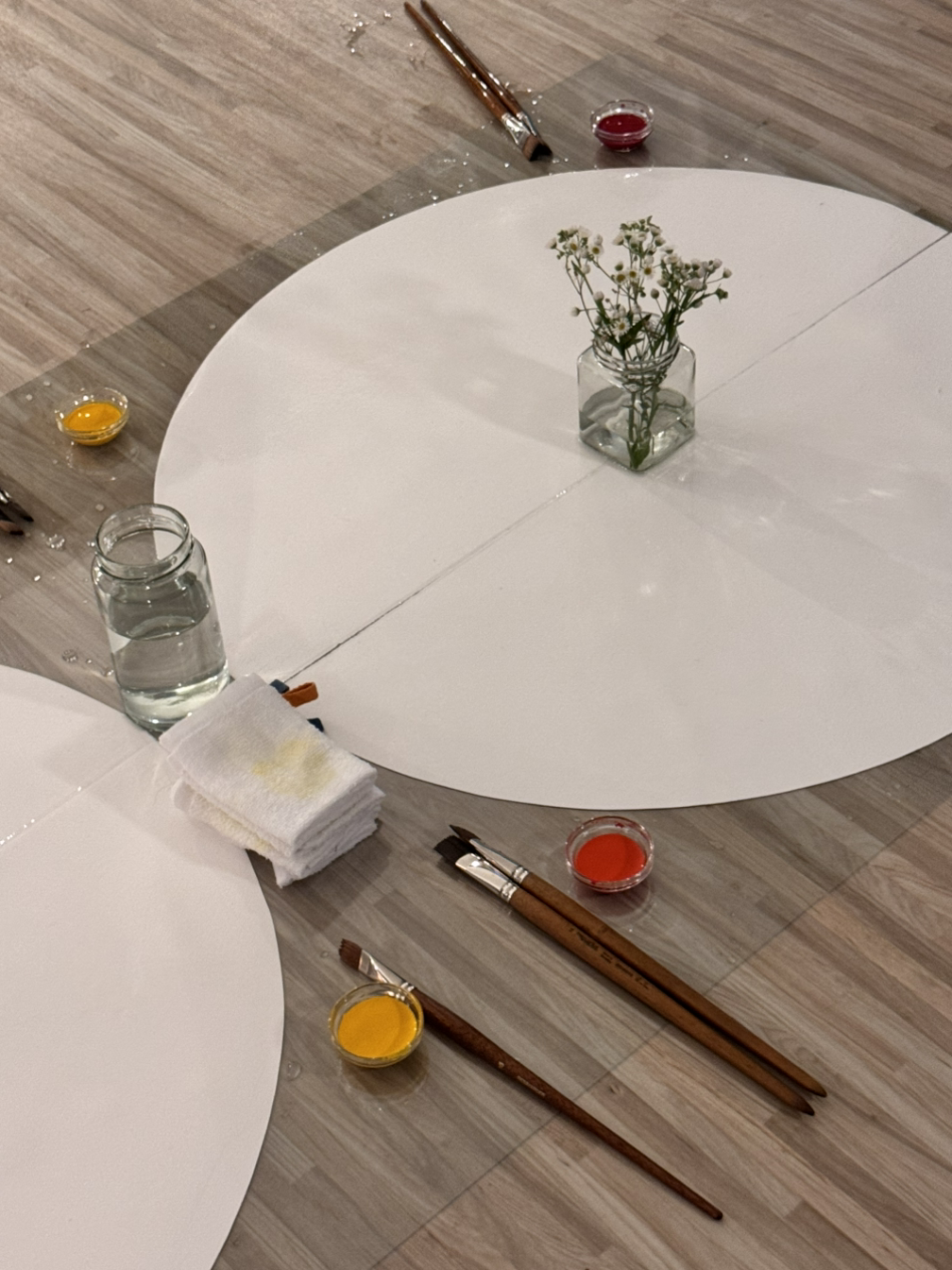 흰 종이에 다양한 색이 물들게 마음 가는대로 붓질을 하기도 하고,