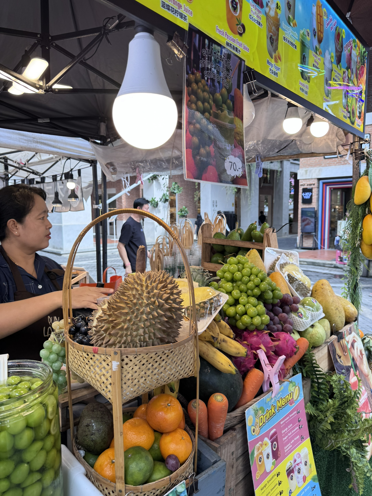 코코넛 음료도 팔고 두리안 음료도 팔고 만두도 팔고 맥주도 판다