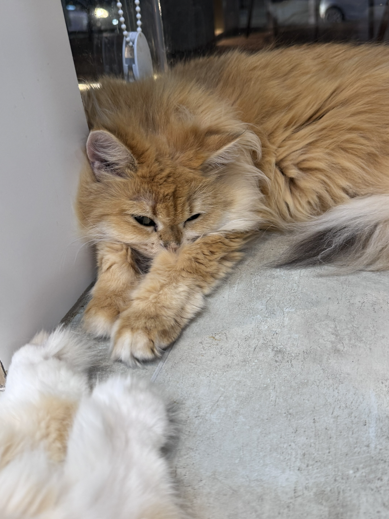 벽면에 기대어 잠든 고양이를 가만히 지켜보고 있으니