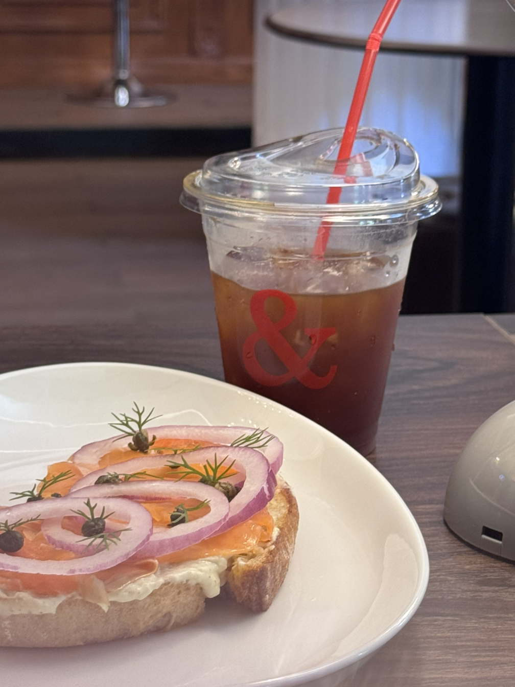 술을 먹진 않고 연어 샌드위치와 커피를 주문했다.