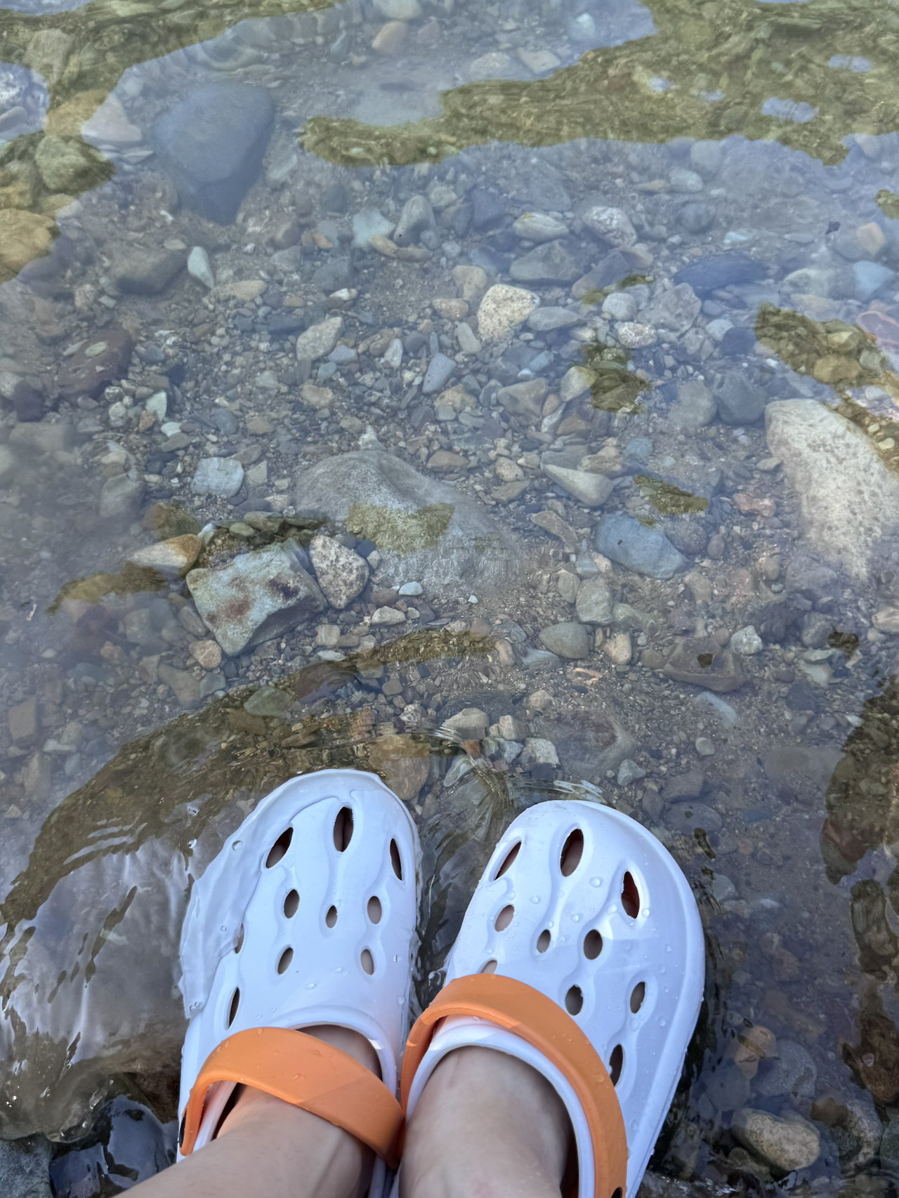 계곡 가장자리에 앉아 발을 담그고 앉았다.
