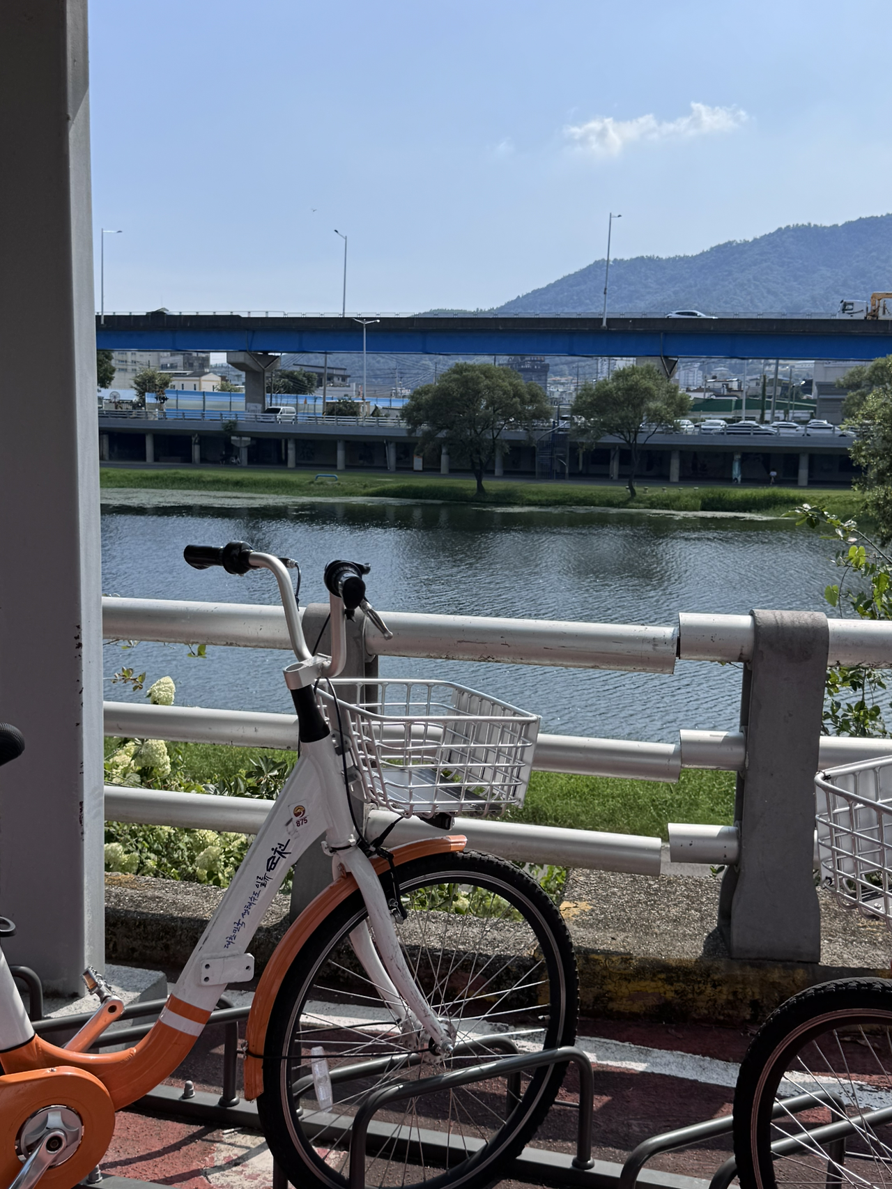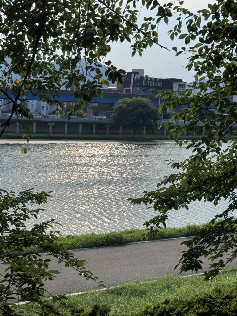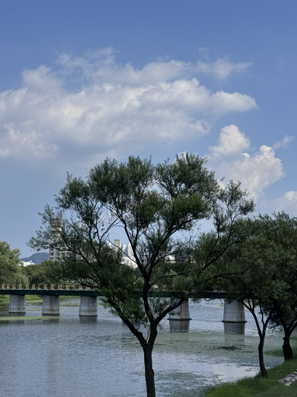 강에 비친 윤슬이 예뻐서 잠깐 멈춰서 사진도 찍고