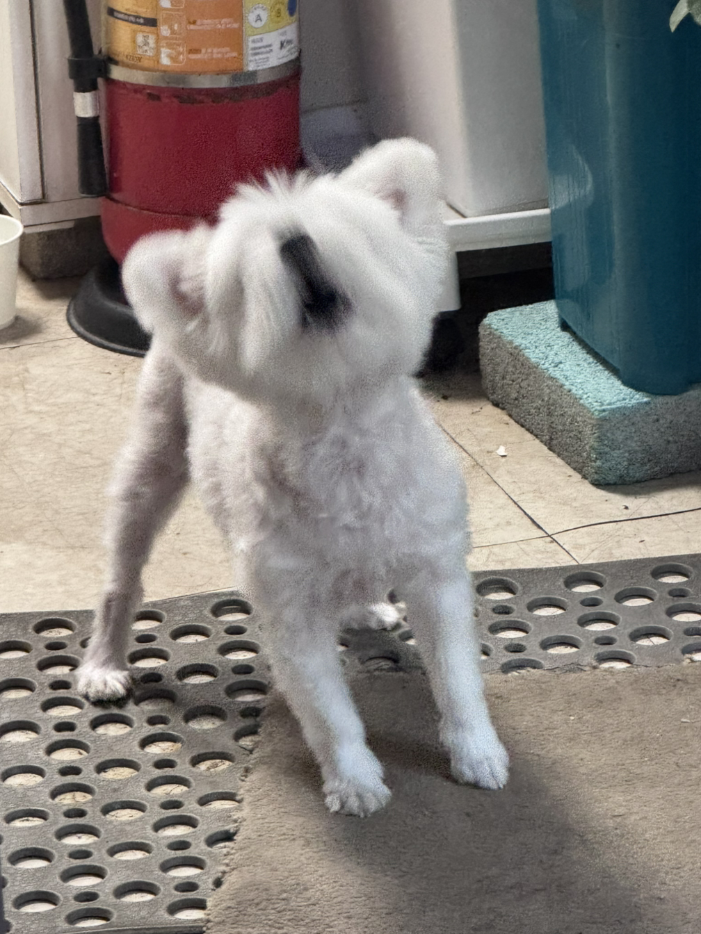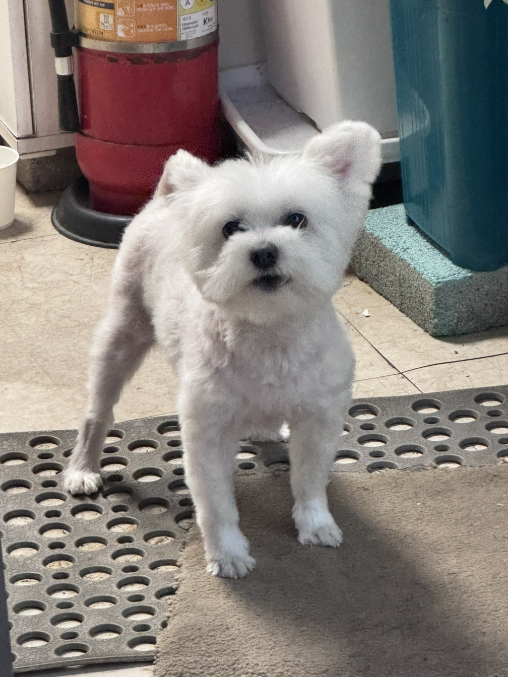숙소 근처 미용실에 사는 댕댕이 '몽이'이다.