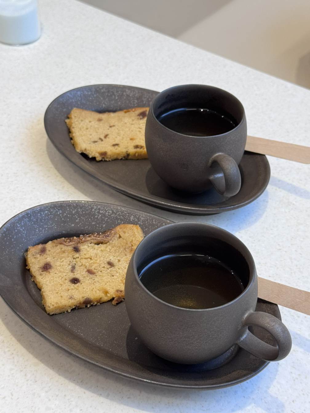접시와 컵은 묵직하고 거친 표면이 매력적이었는데,