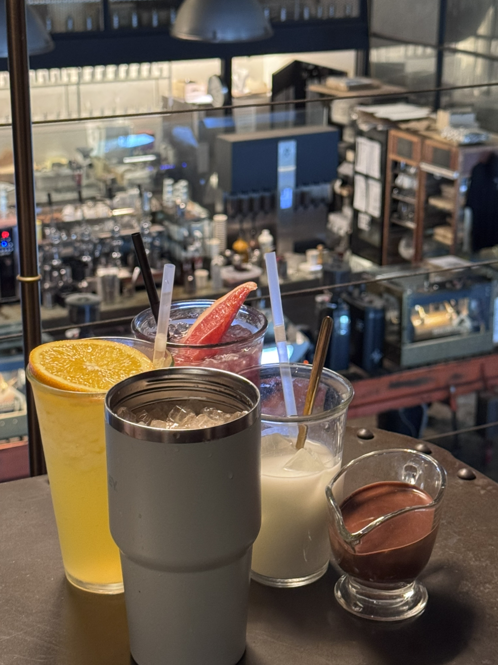 룸메들은 오렌지 에이드와 뱅쇼에이드, 바닐라 라떼를 시켰다.