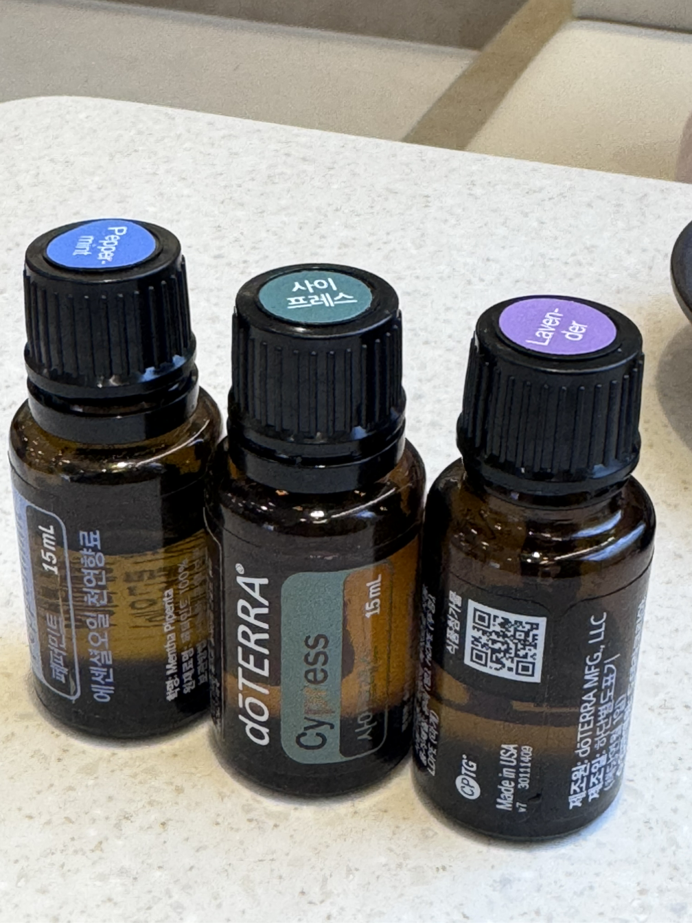 아로마 오일은 '사이프레스, 페퍼민트, 라벤더' 세 가지가 있었는데,