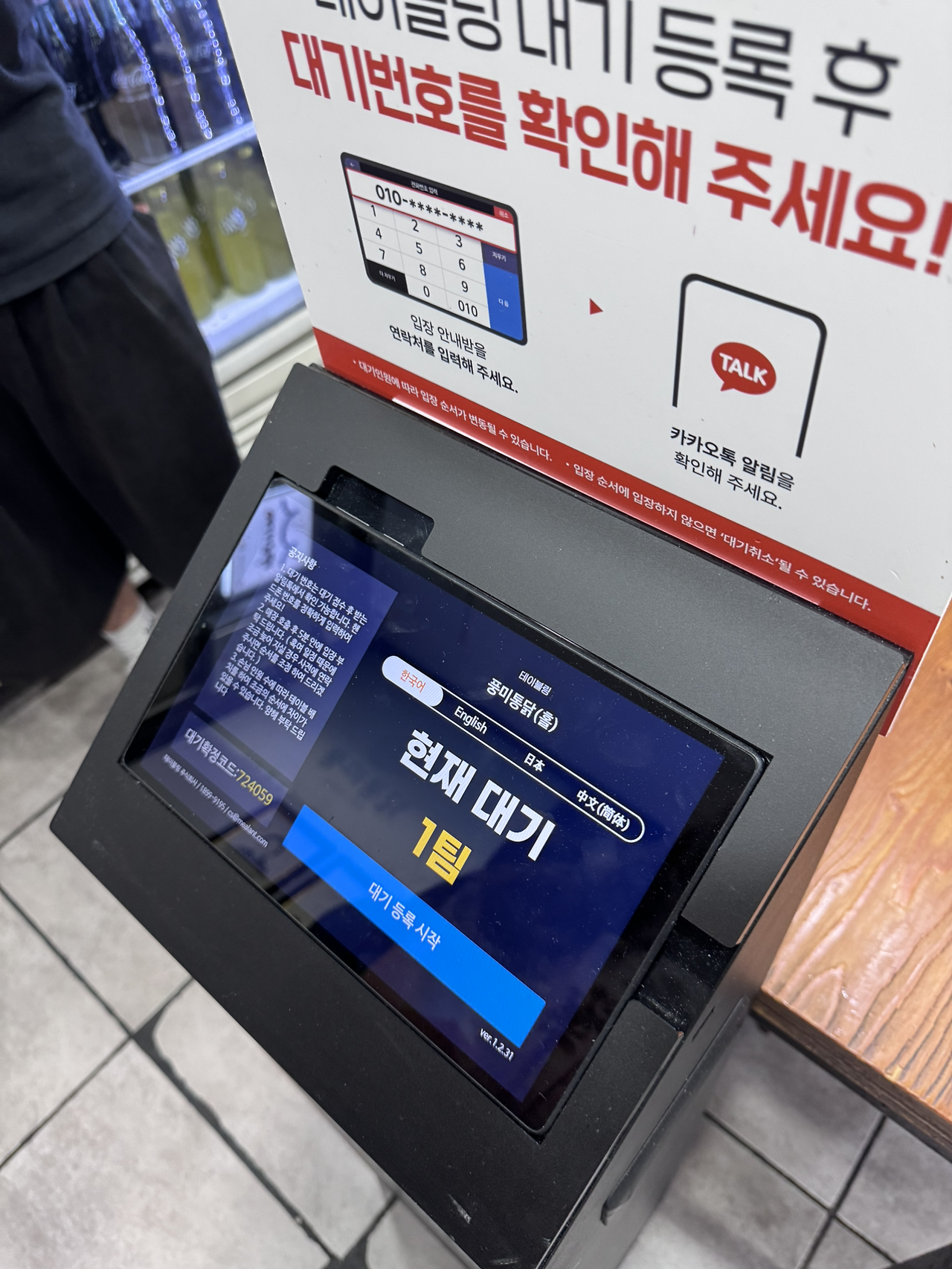 잠시만 기다려 달라고 말씀하셔서 테이블링에 등록했고, 대기 공간으로 꾸며둔 옆 가게에서 쾌적하게 기다리다가 알림이 떠서 치킨을 먹으러 향했다.