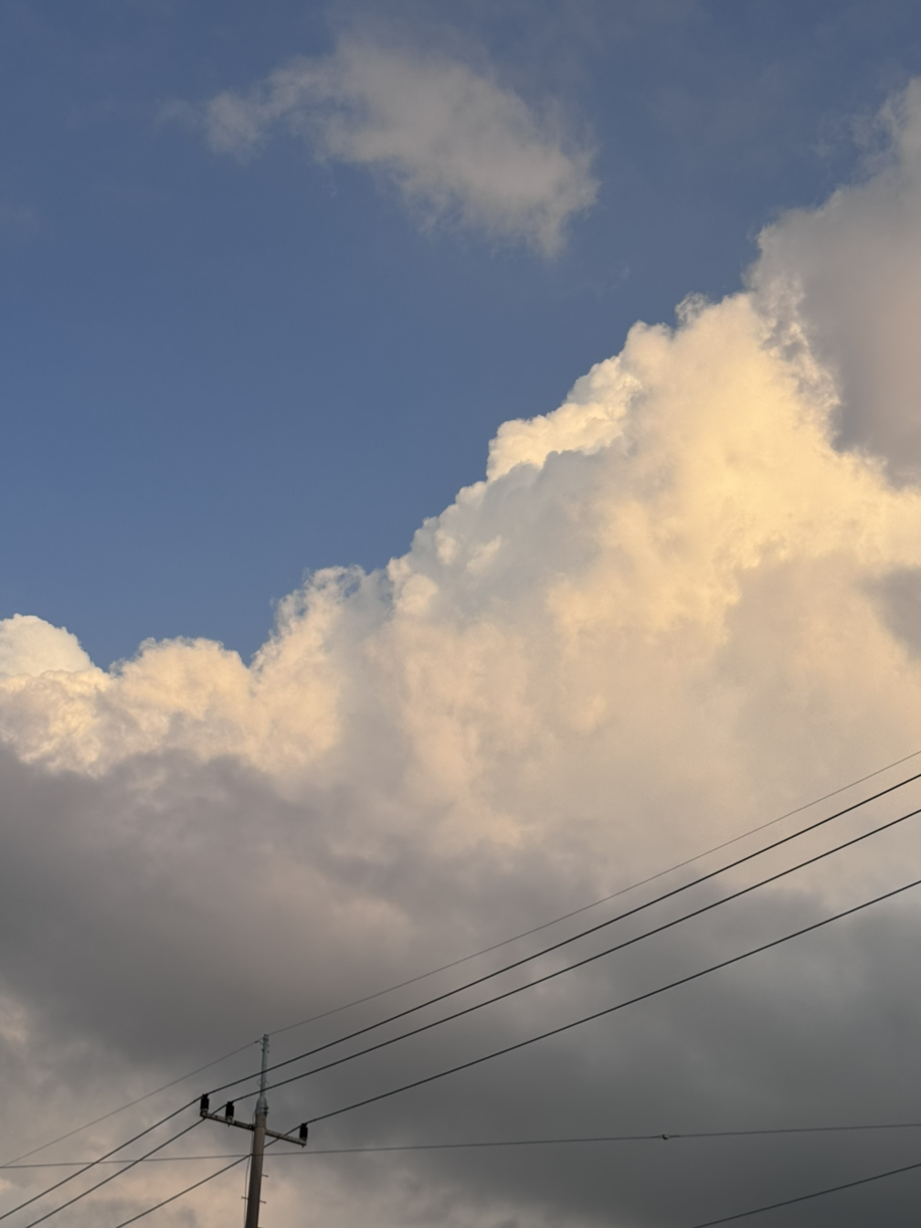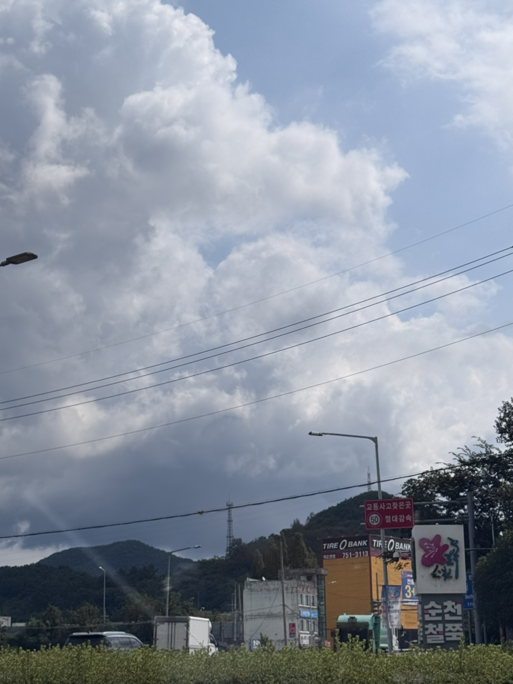 먹구름과 흰구름이 조화롭게 섞여있어서 마치 그래픽 같다고 생각했다.