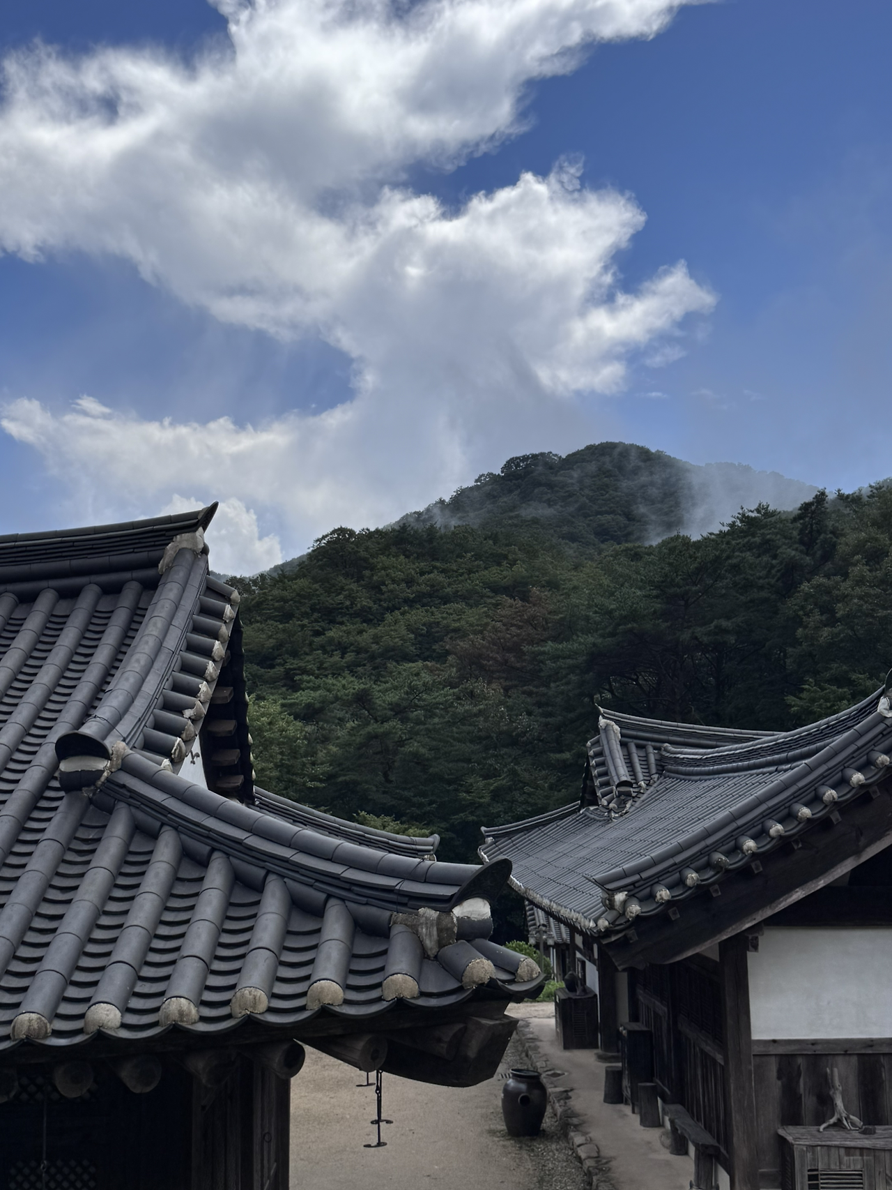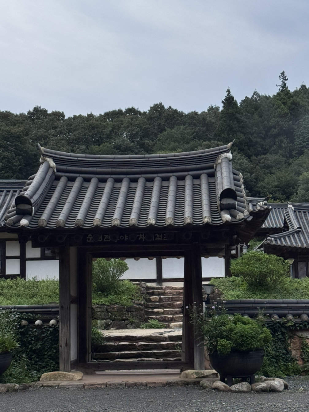 한국의 미가 여실히 드러나는 한옥 앞에서