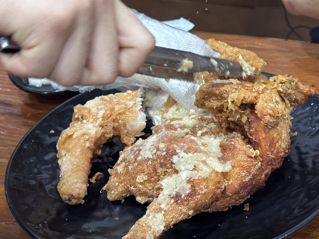 마늘통닭이 맛있었지만 가게 자리가 협소해서 오랫동안 자리를 잡고 앉긴 불편했다.