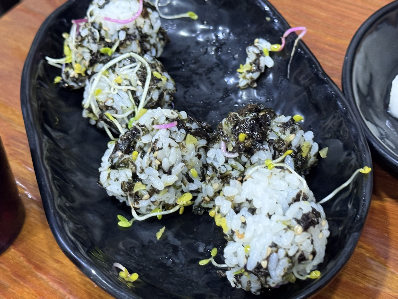 후라이드 통닭, 마늘통닭, 주먹밥이 나오는 메뉴였다.