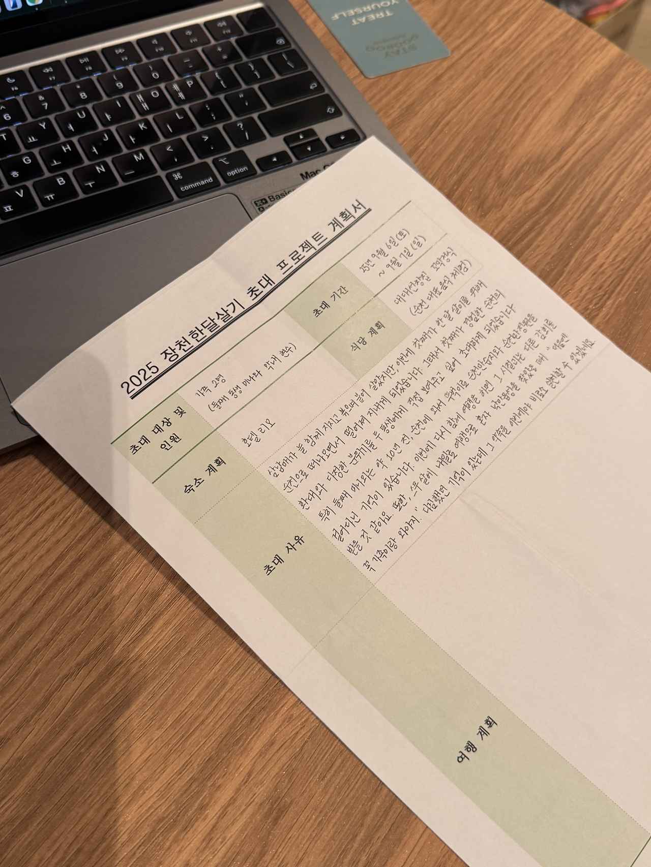 숙소로 돌아와서는 오전에 대략적으로 기입해두었던 계획서를