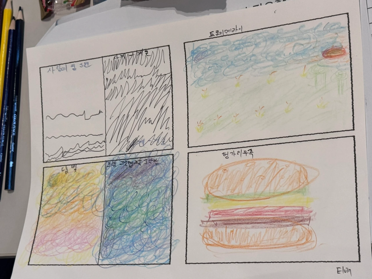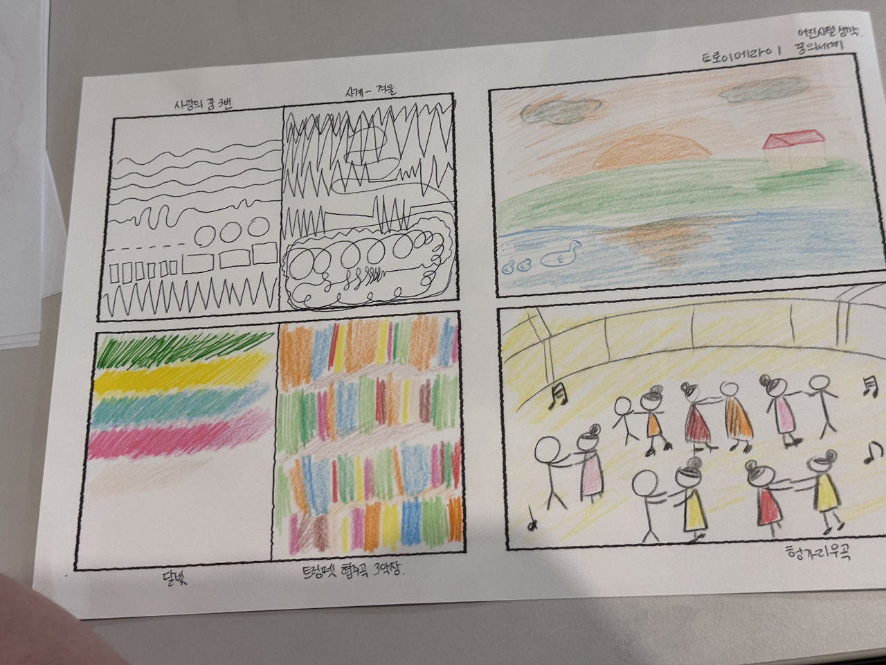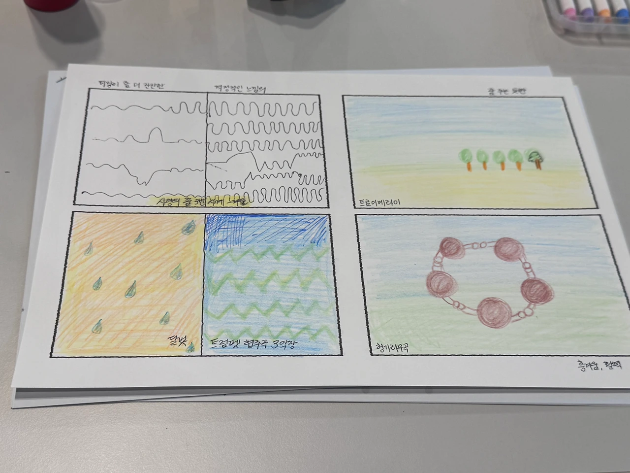 느껴지는 장면이나 그림을 그려보라고 하셔서 그린 것들.
