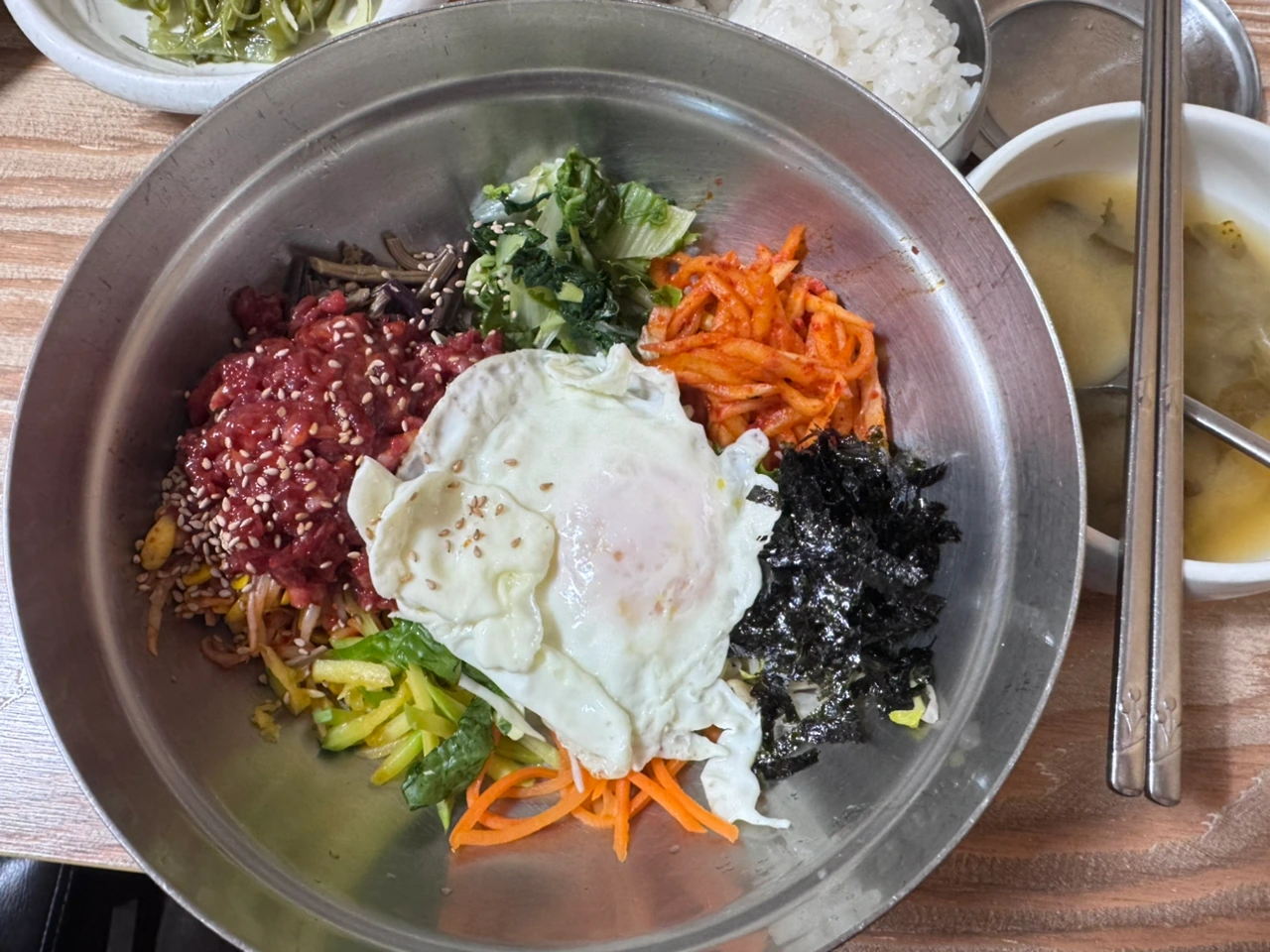 신선한 육회가 올라간 육회비빔밥이 나왔다.