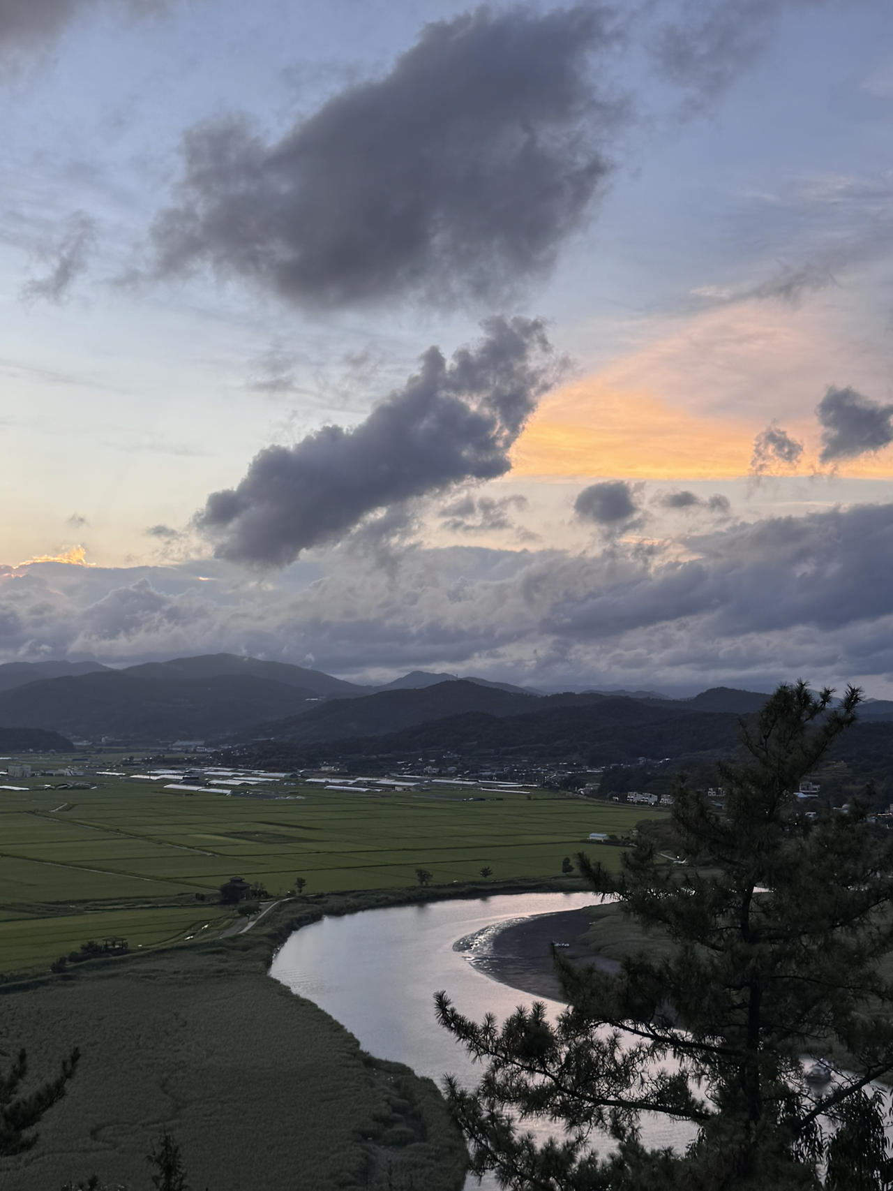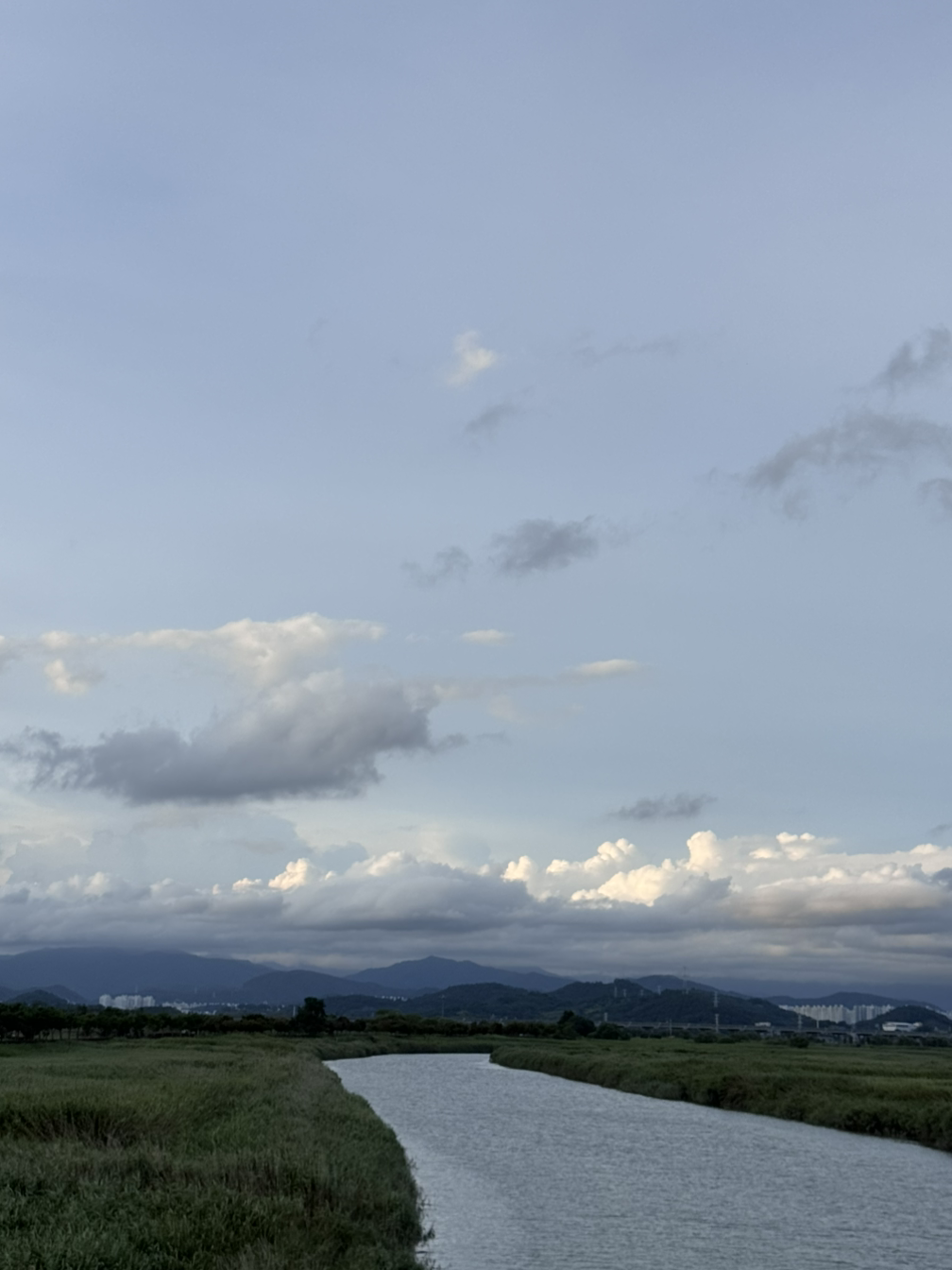 높지 않은 산 사이에 자그마한 강이 있고,