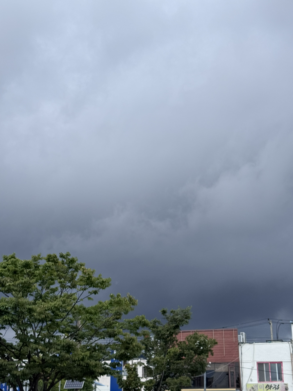 먹구름이 잔뜩 끼어있었는데 점차 맑아지는 듯 파란 구름도 한뭉텅이가 구석에 자리 잡고 있었다.