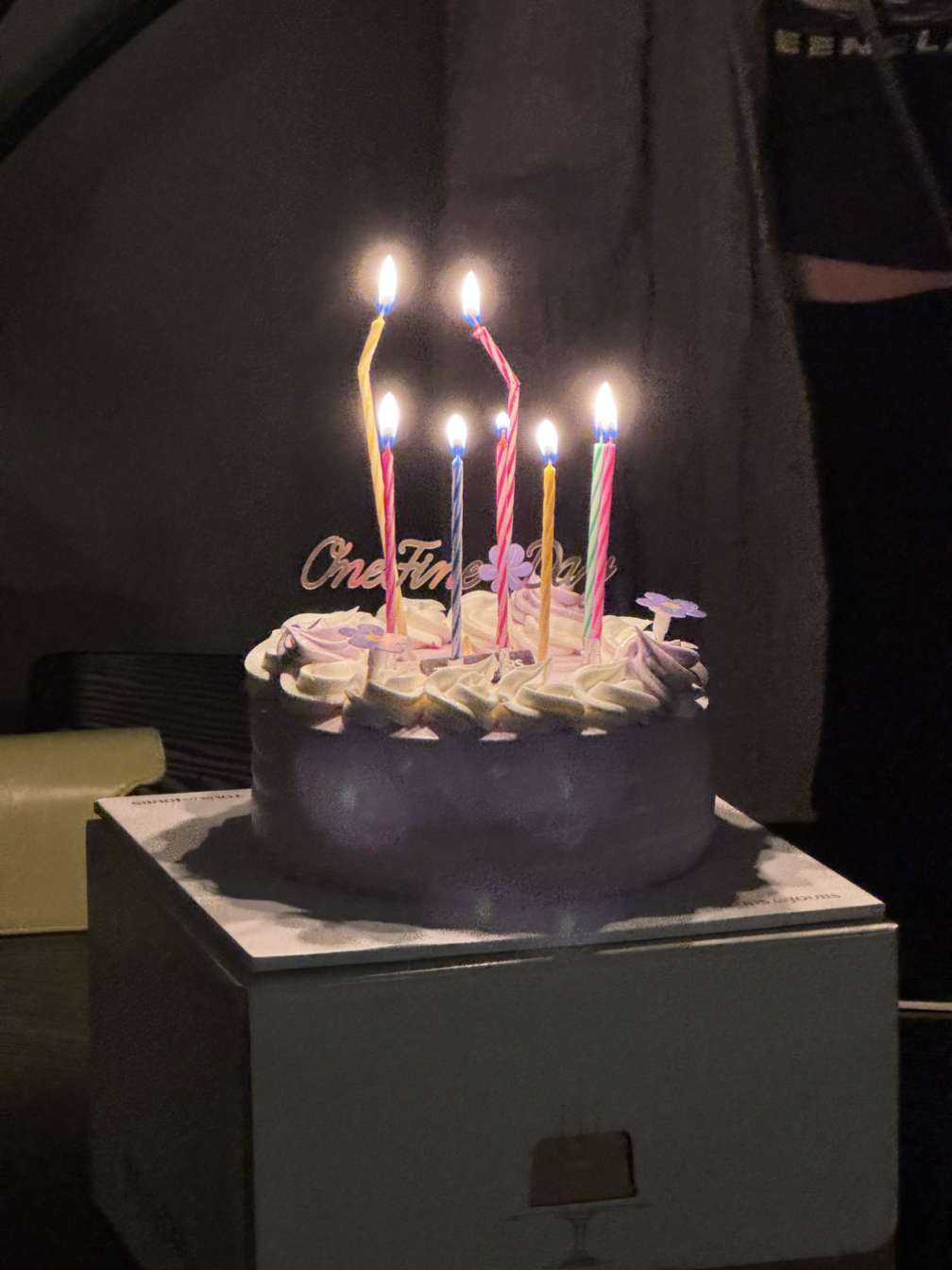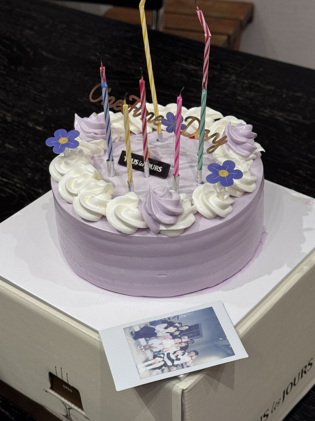 멤버 중 한 명이 케이크를 사와 서프라이즈를 축하해주었다.