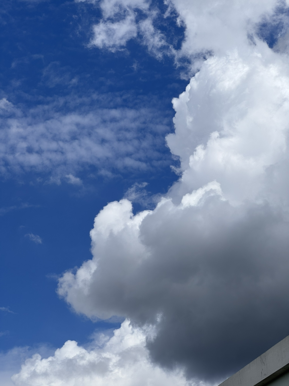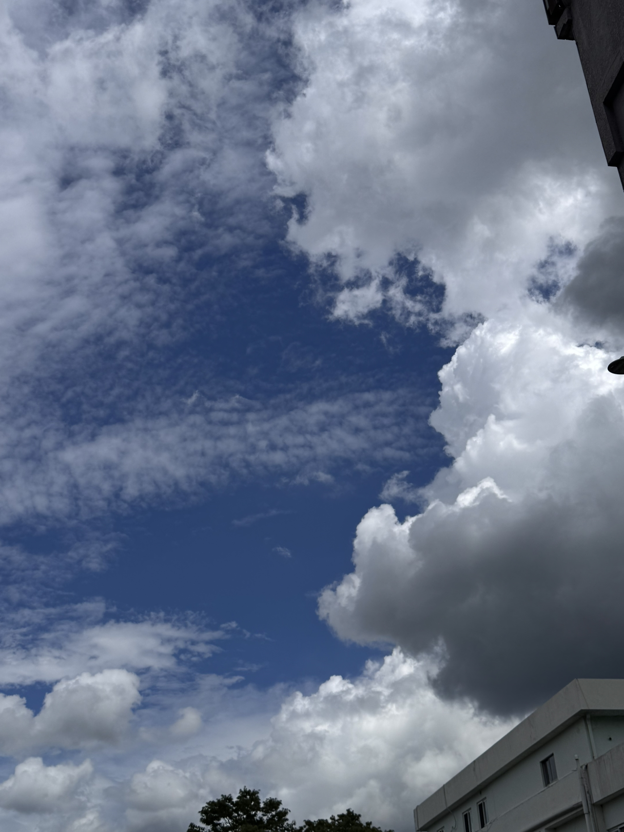 파란 하늘과 흰 구름이 대비되어 마치 색종이를 오려 붙인 낙서처럼 비현실적으로 느껴졌다.