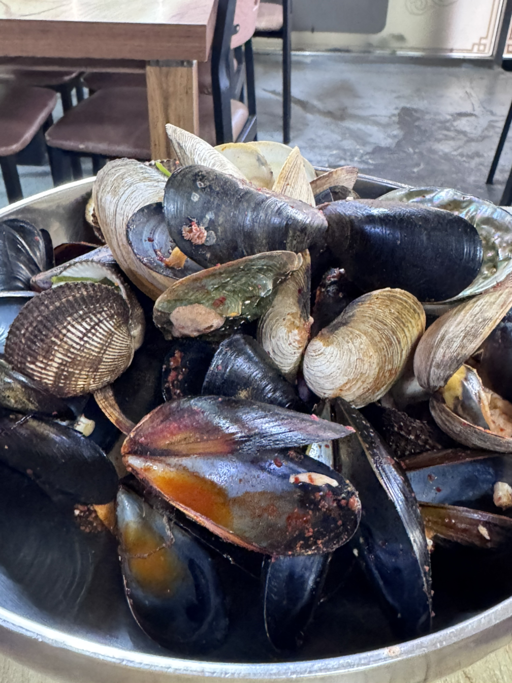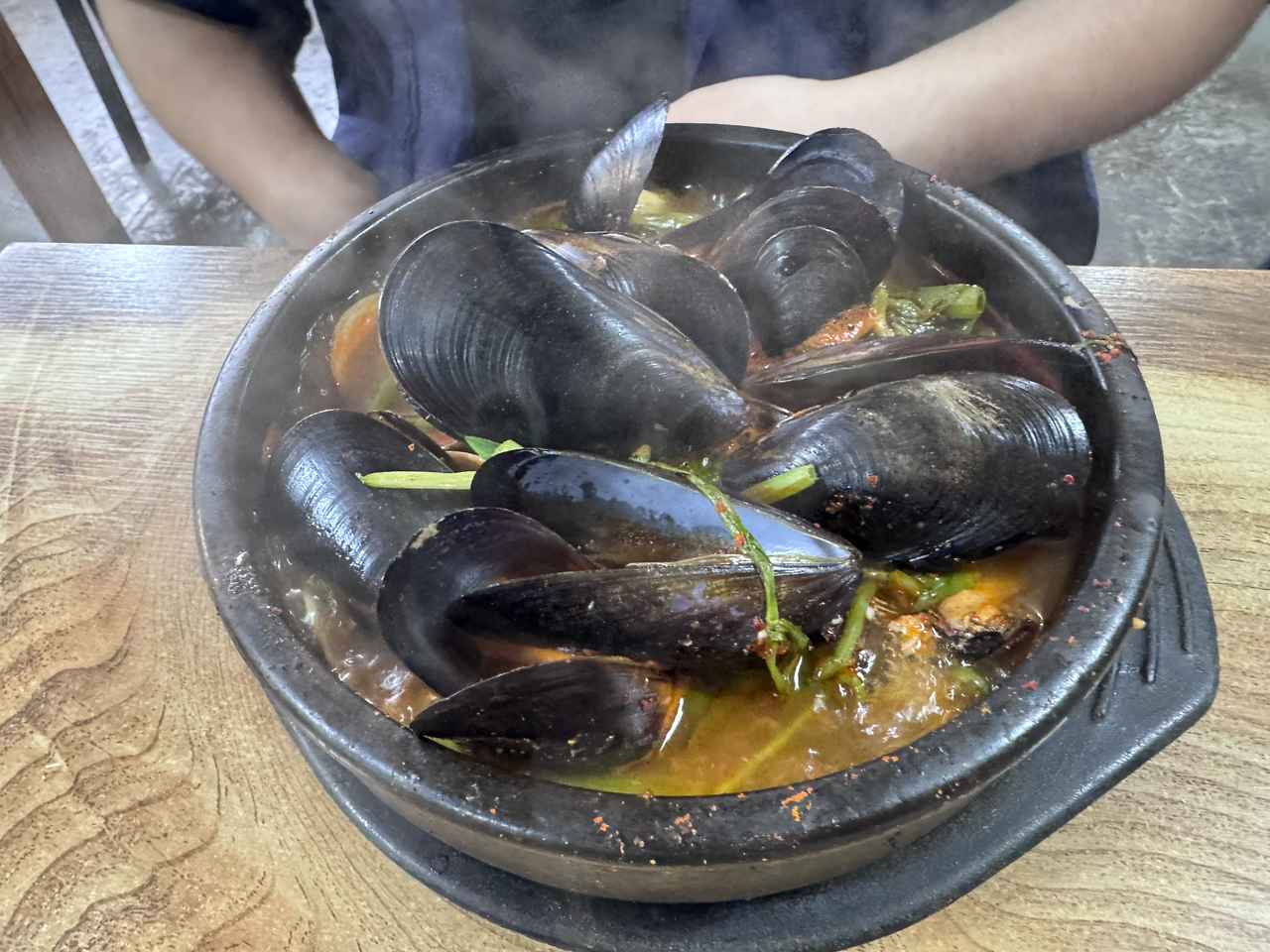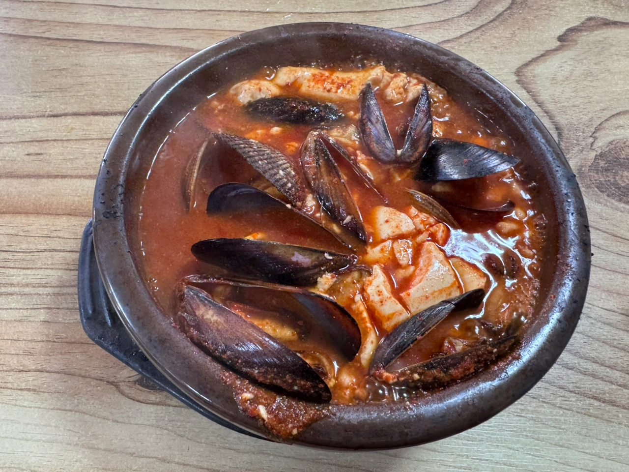 담긴 해물의 종류로는 홍합이나 가리비, 전복, 오징어 등이었는데, 맵지 않고 적당히 칼칼해서 속이 확 풀리는 기분이었다.