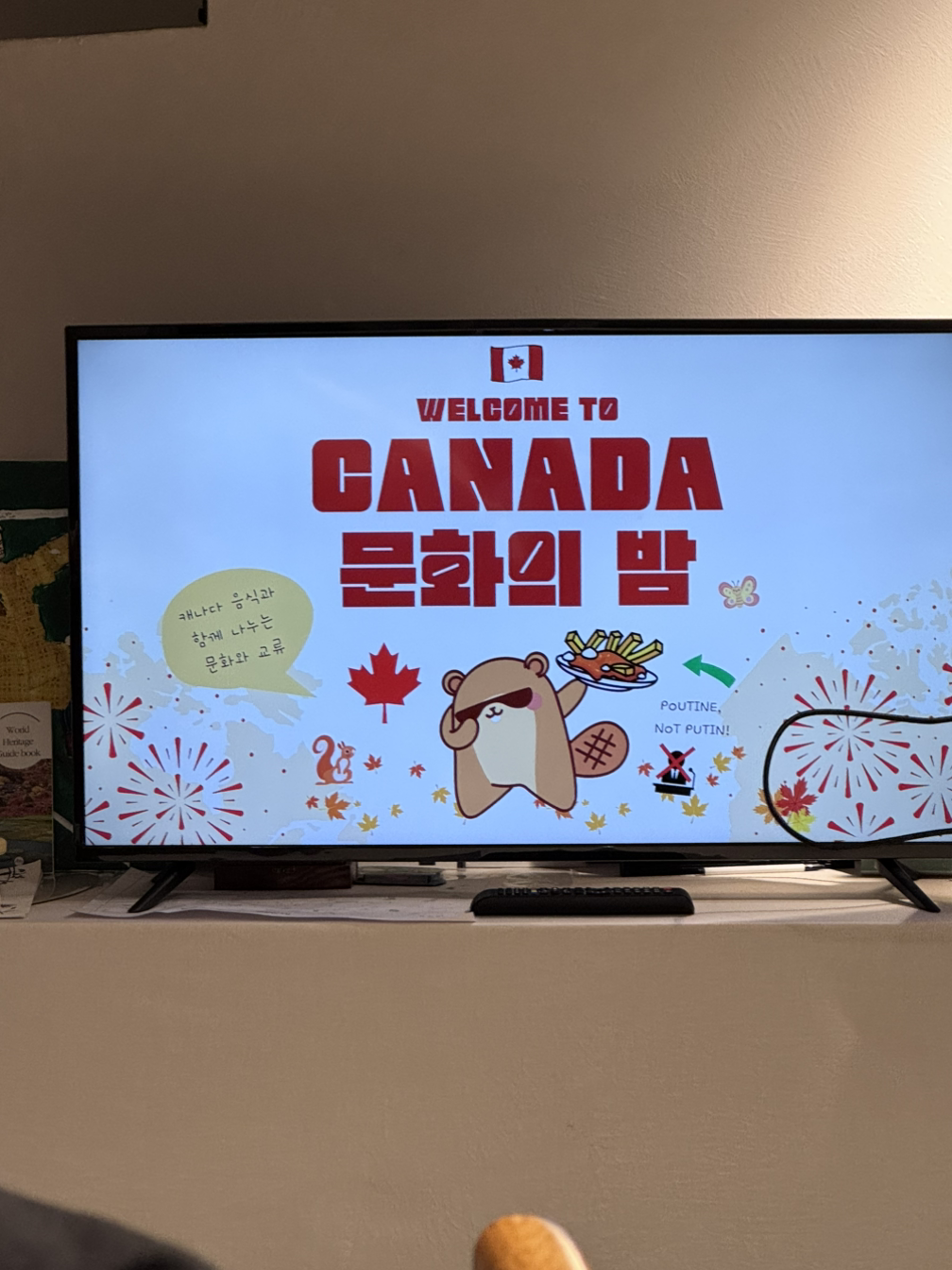 캐나다 문화에 대해서 간략하게 설명해주고 캐나다 음식을 나눠먹는 시간인데,