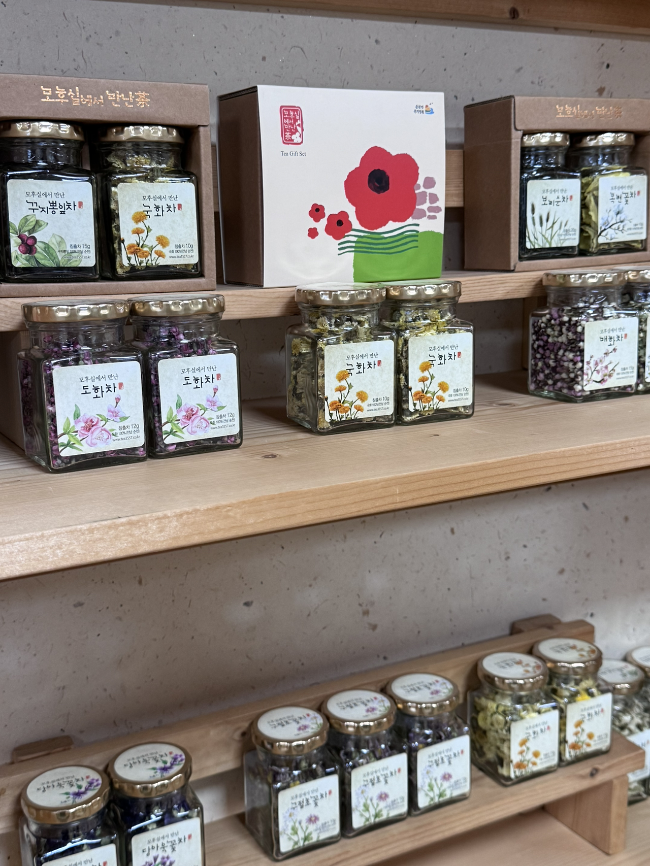 매화차, 메리골드꽃차, 아카이카꽃차 등 다양한 꽃차를 판매 중인 '모후실에서 만난 차'