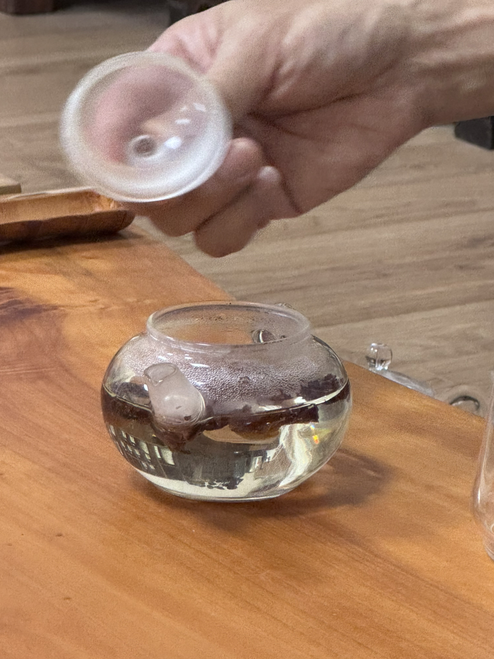 적당한 시점에 '숙우(茶海)'에 옮겨 담은 뒤 찻잔에 나누어 따르는 과정을 거친다.