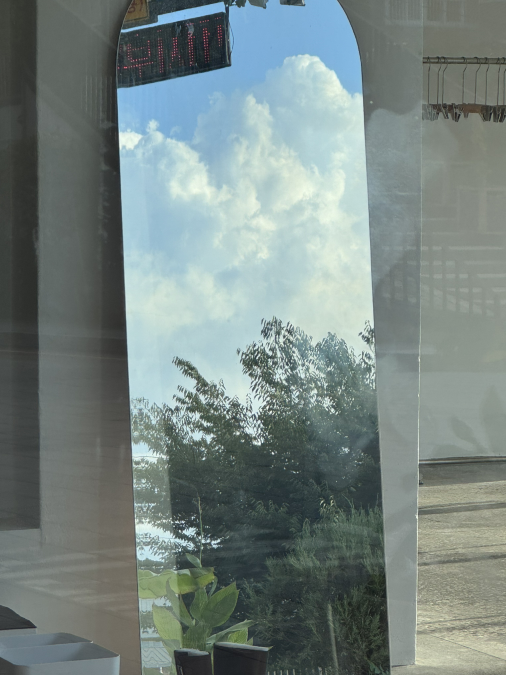 거울에 비치던 청량한 하늘도