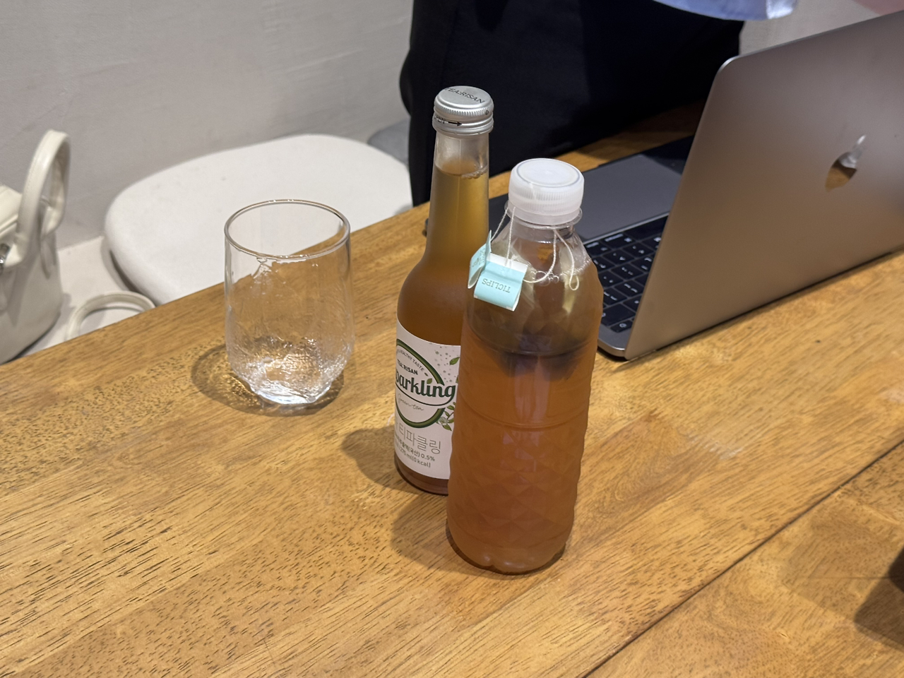 작업을 하고 있노라니 룸메 지혜가 티 스파클링과 냉침한 티를 함께 마시자며 들고 와 나눠마셨다.