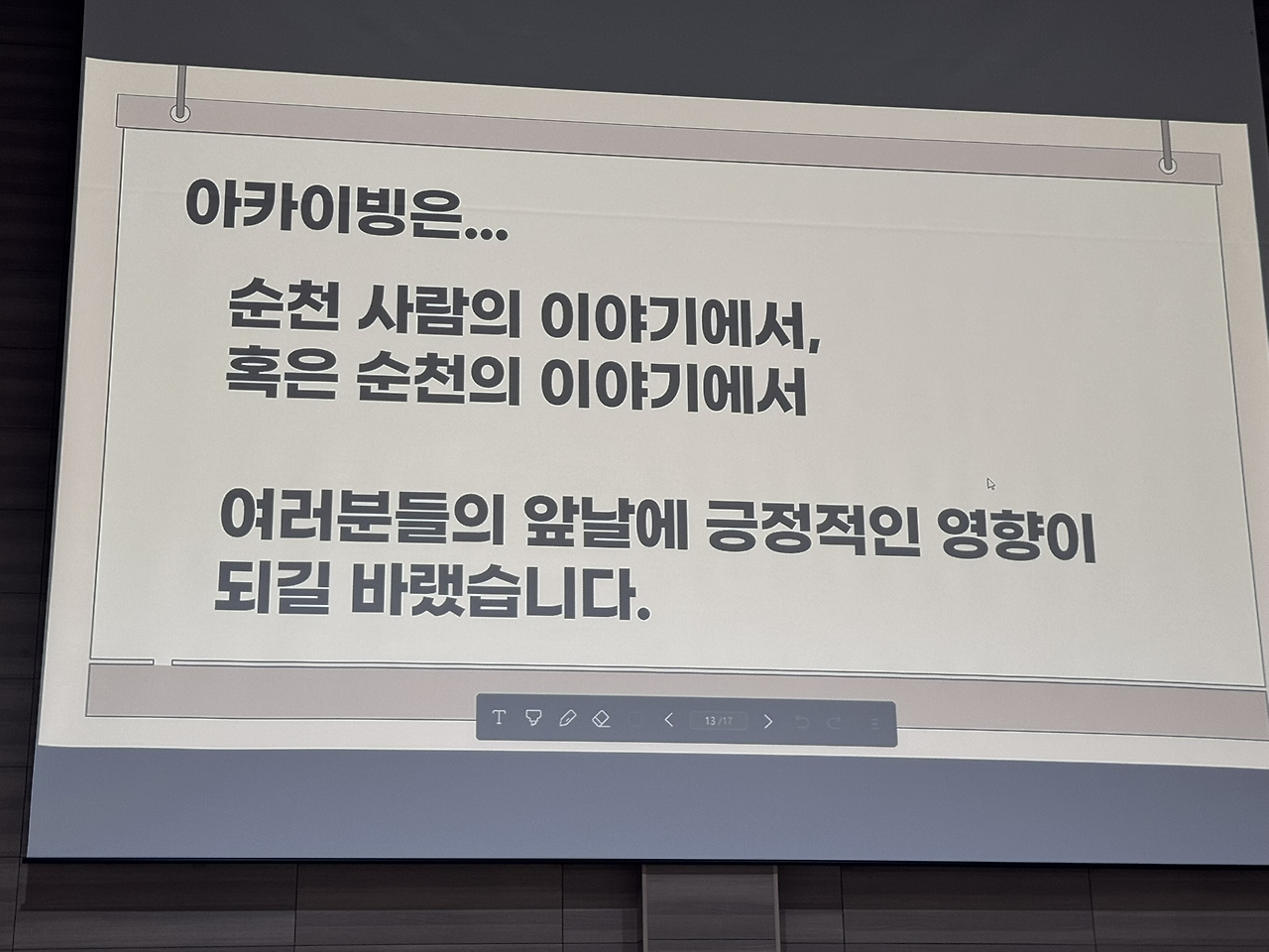 성과 발표회는, 우리 10명이 차례대로 본인의 아카이빙과 초대 주간에 대한 소감을 발표하는 것이었는데,