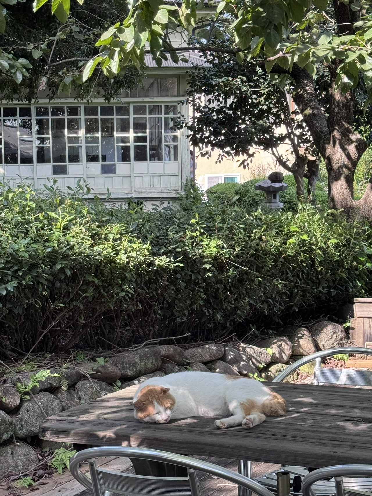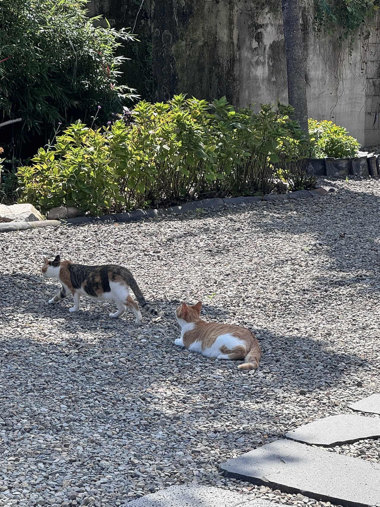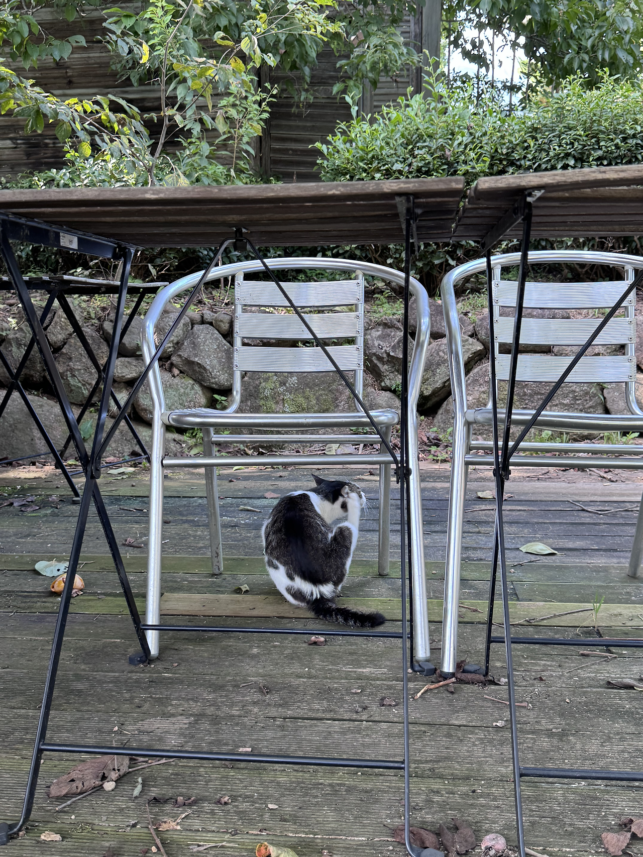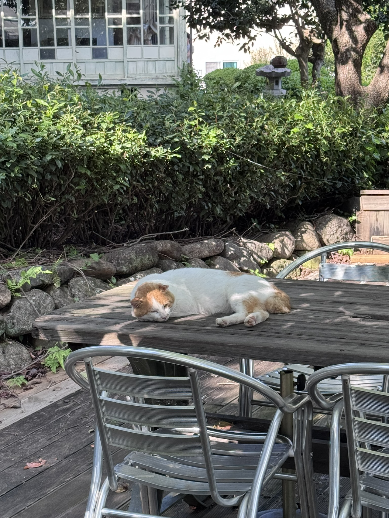 나는 테이블 위에서 여유로운 시간을 즐기고 있는 고양이들에게 다가가