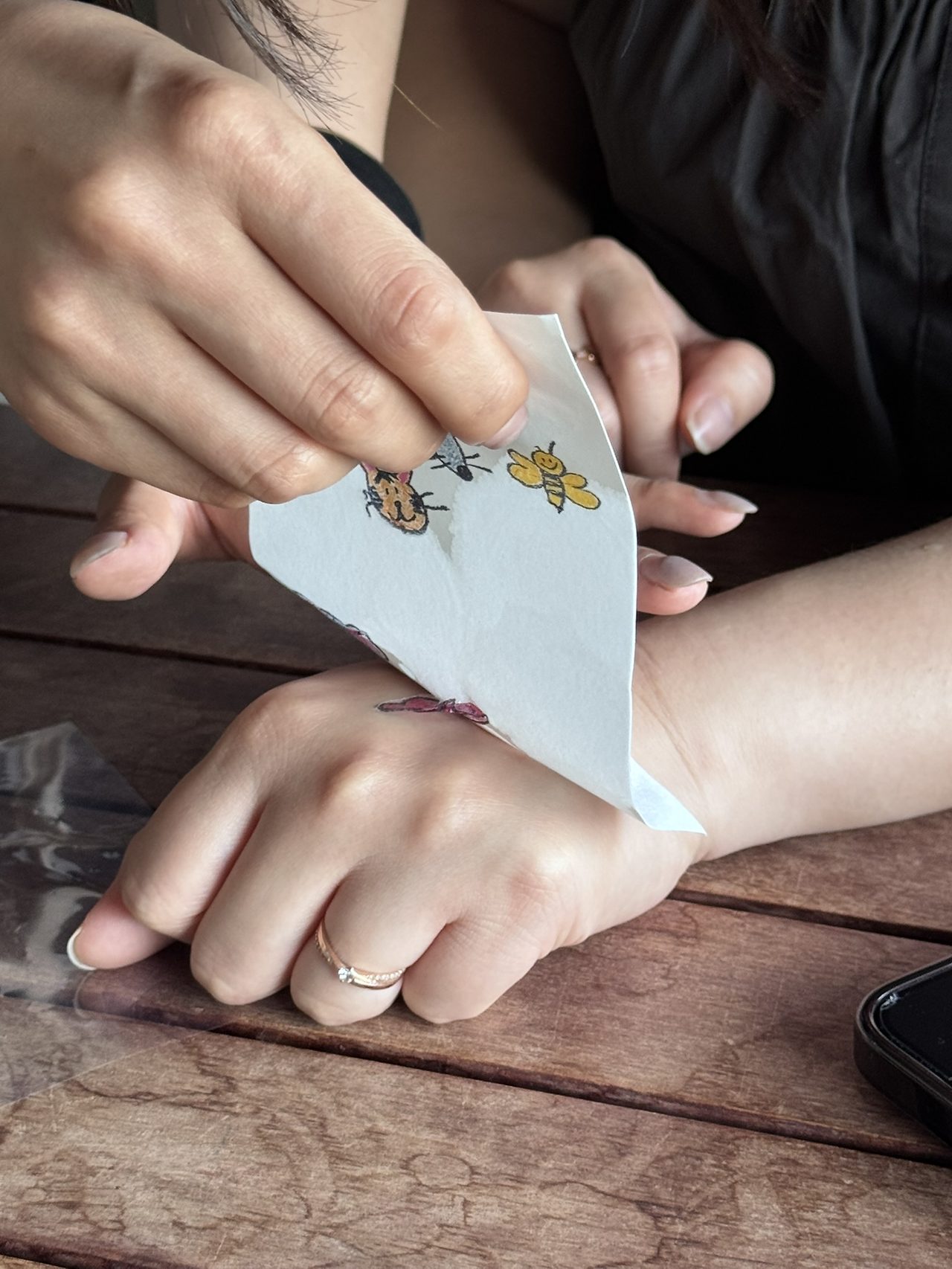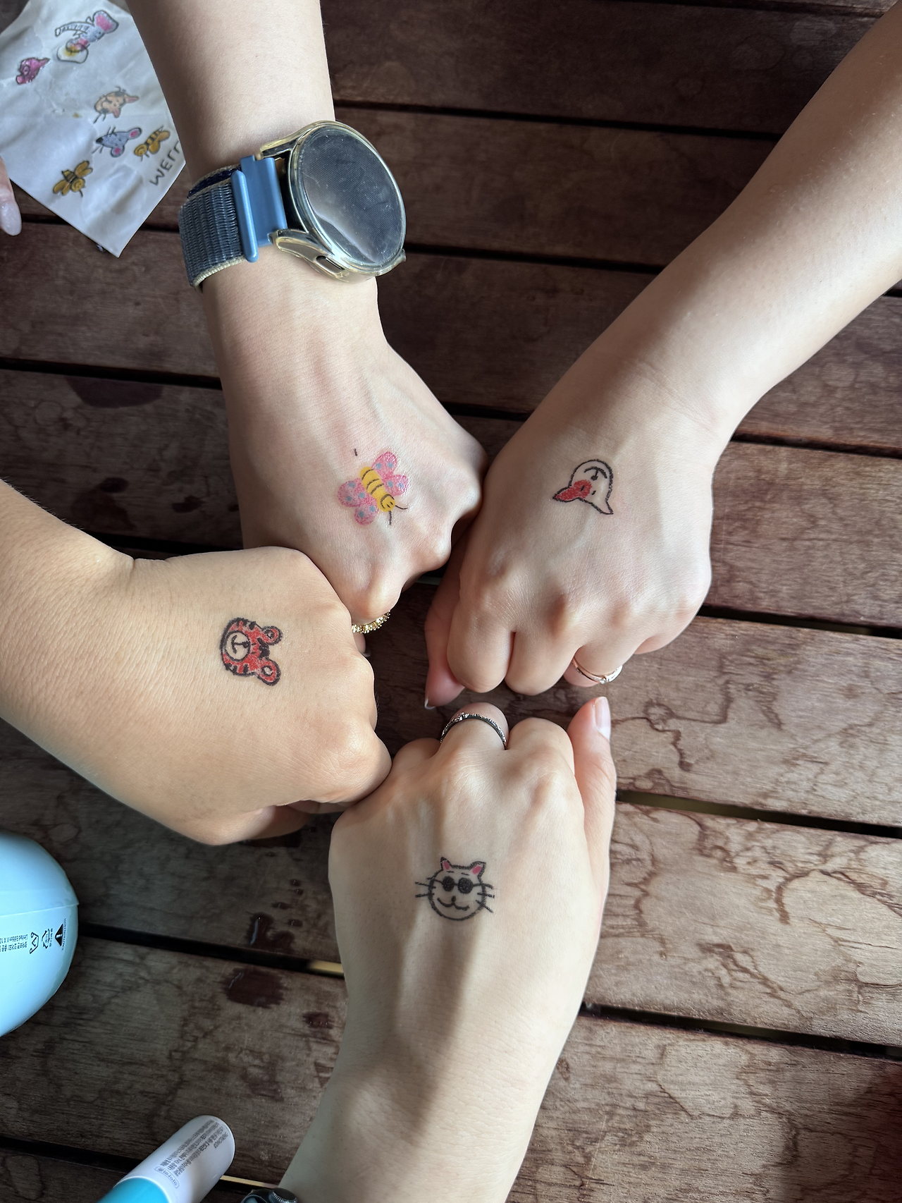 남원 친구 현지와 당근이 경진이도 캐릭터를 하나씩 골라 손등에 붙였다.