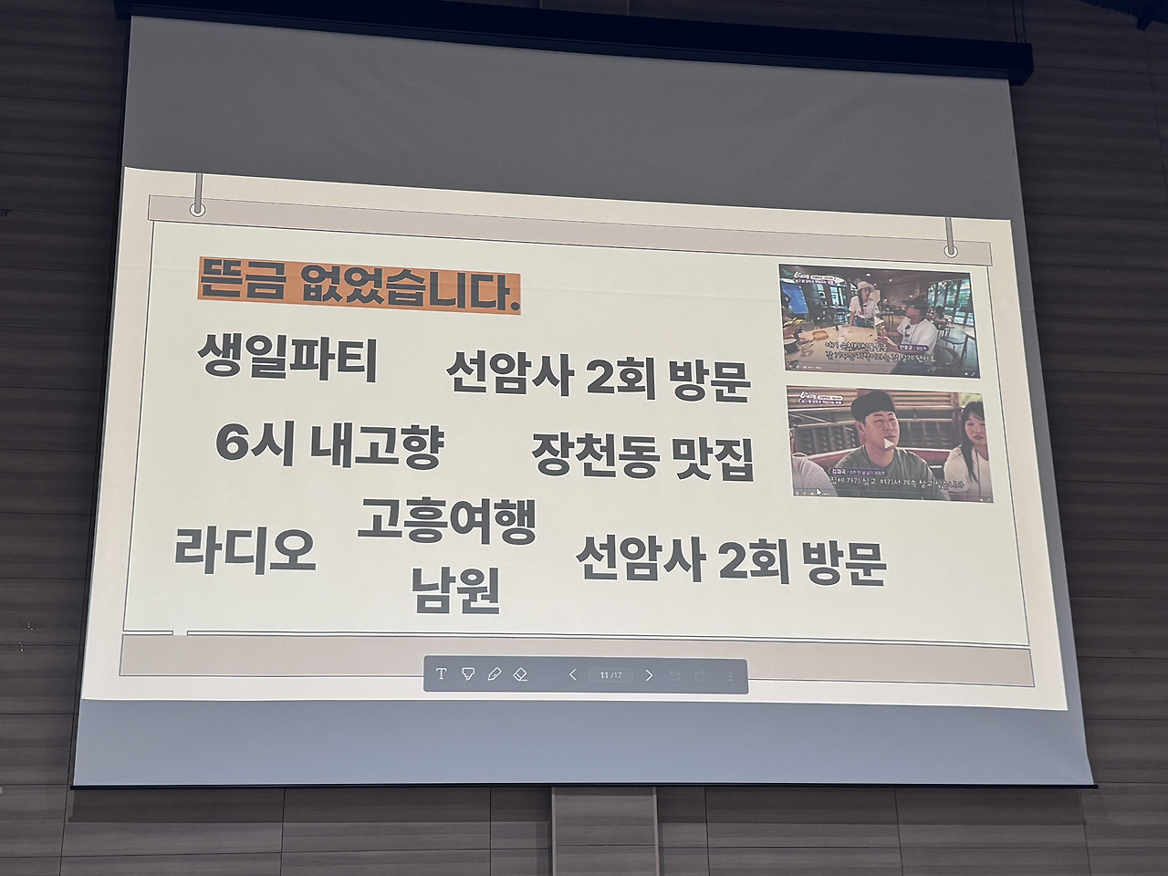 나는 왼쪽에서 두 번째로 앉아 두 번째로 발표하게 되었다.