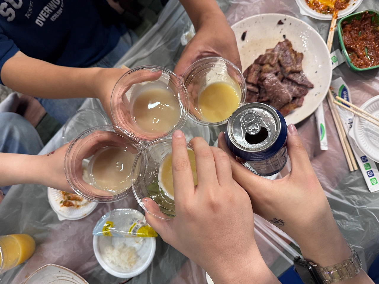 누구는 막걸리를 마시고, 누구는 맥주를 마시며 쉴 새 없이 먹고 마시며 즐기고 있는데,