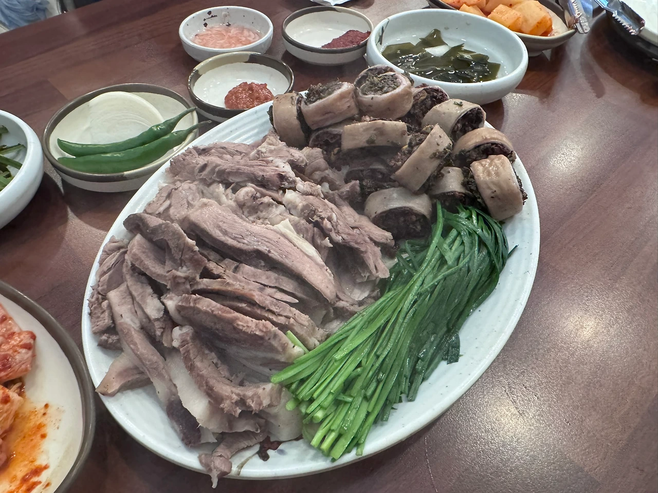거기에 순대를 푹 찍어 부추와 함께 곁들여 먹는 것이라 한다.