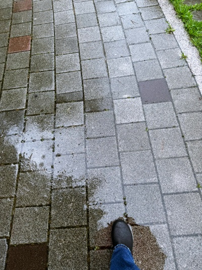 우산은 썼지만 신발은 속수무책으로 흠뻑 젖었다.