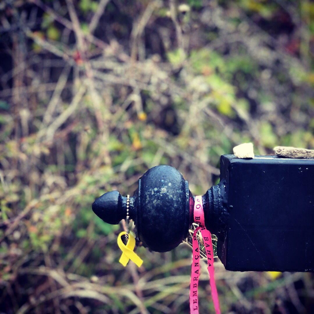 다시 힘을내 걷기 시작. 한 언덕을 오르다가 선지 순례자들의 비석을 보았다. 스페인어로 비문이 쓰여있어 무슨말인지 알리 없지만. 그옆에 세월호 사건의 상징 노란리본이 달려있었다. 이따금씩 걸려있는 까미노 위 추모의 물결.